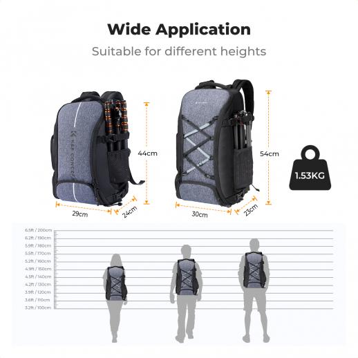 K&F Concept 32L Zaino Fotocamera Professionale Multifunzionale Zaino Fotografico Portatile Borsa Fotocamera - Backpack Nature Wander 08(Grigio)