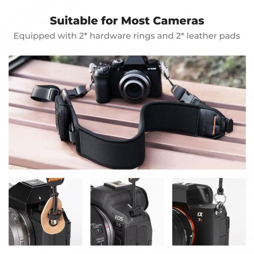 - * 【Cavo Dyneema Triple-Weave durevole】Compatibile con la maggior parte delle fotocamere, include una funzione di avviso di sicurezza. Viene fornito con un paio di adesivi in pelle antigraffio e anelli metallici omaggio per adattarsi a una gamma più ampia di fotocamere.