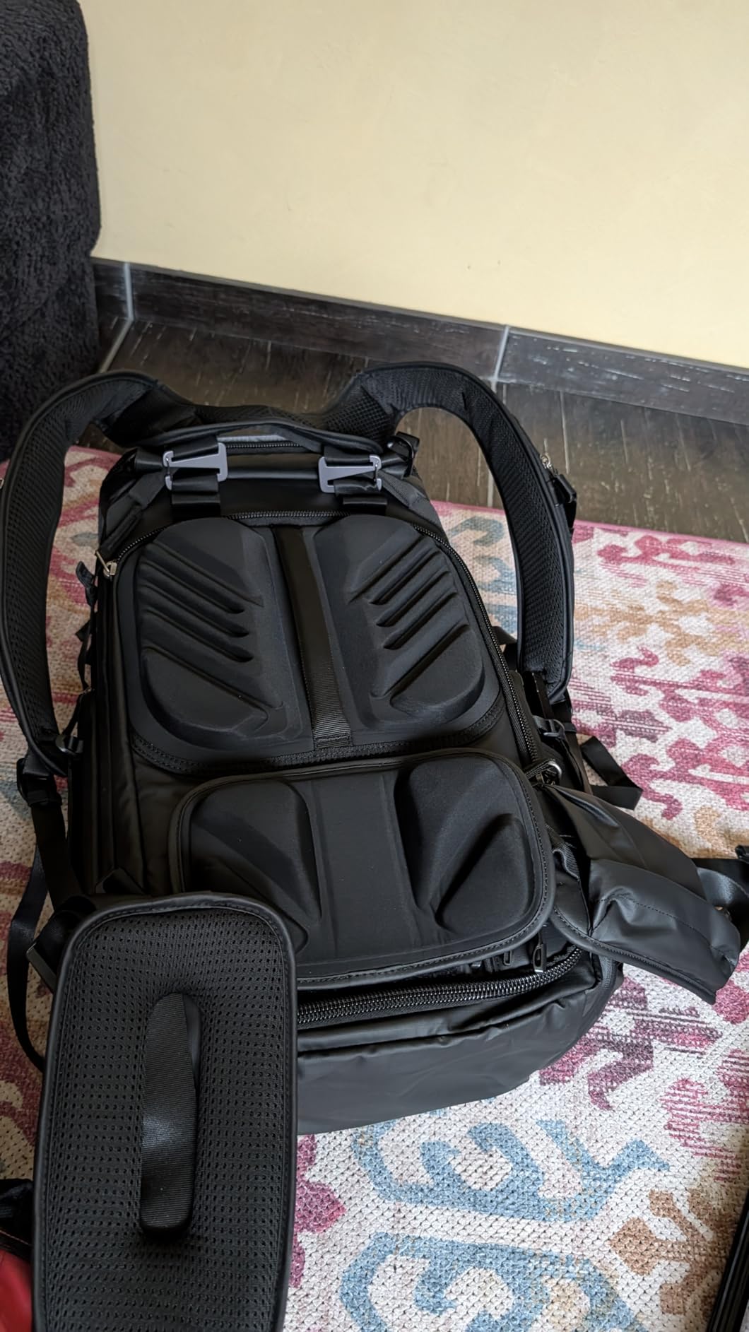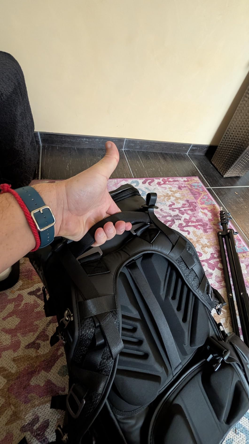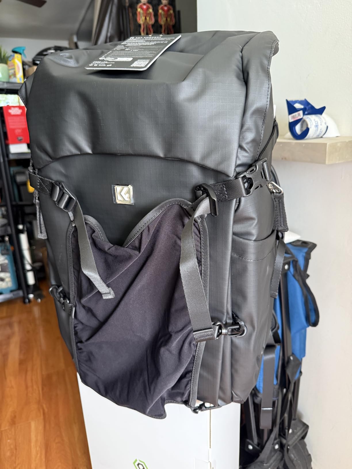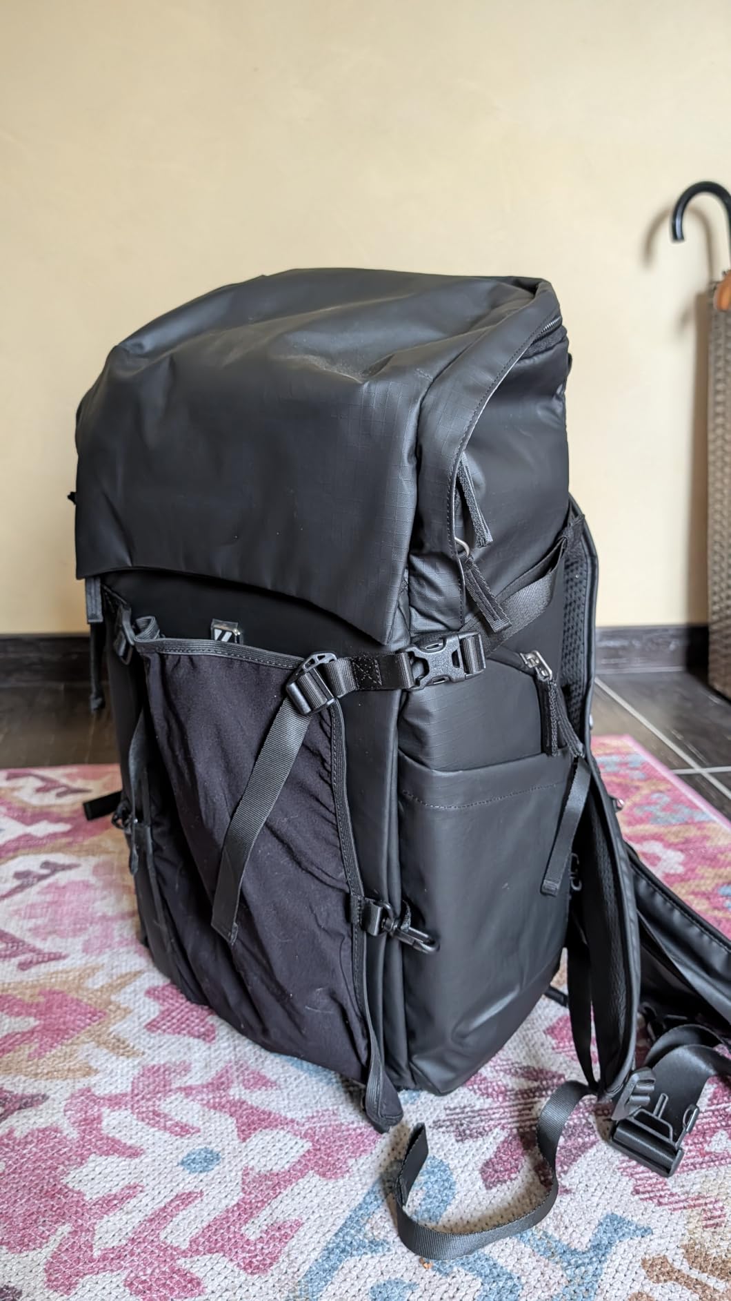 Al momento, questo è lo zaino più grande e completo che possiedo per la fotografia/videografia. Adoro questo design; K&F non smette mai di stupirmi. Possiedo anche altri zaini di marchi come PeakDesign, Manfrotto, Thule e LowePro. È grande; dubito fortemente che sia da 30 litri. Accanto al ProLight da 30 litri nella foto, si può notare la differenza. È uno zaino rigido, cosa che apprezzo molto, perché non voglio che gli oggetti si schiaccino l'uno contro l'altro. Internamente, ha una struttura che lo mantiene rigido, ma l'intero scomparto interno è come un "cassetto" rigido rimovibile, che trasforma lo zaino in uno zaino da trekking, ad esempio. La fodera è decisamente impermeabile; questo è ovvio. Questo rivestimento è ideale per pulirlo con un panno umido e pulirlo in una sola volta. Ha buone regolazioni, tra cui una tracolla sul retro e una maniglia superiore "man-down", come quelle in stile militare. È dotato di buone regolazioni e di una tracolla sul retro, oltre a una maniglia superiore "man-down", simile a quella degli zaini militari. Lo schienale ha un design ergonomico e ben ventilato, e il supporto lombare è fantastico. ☝