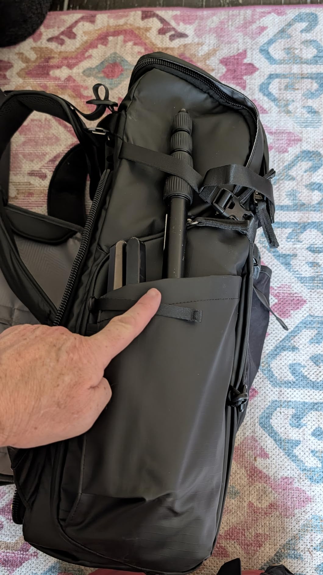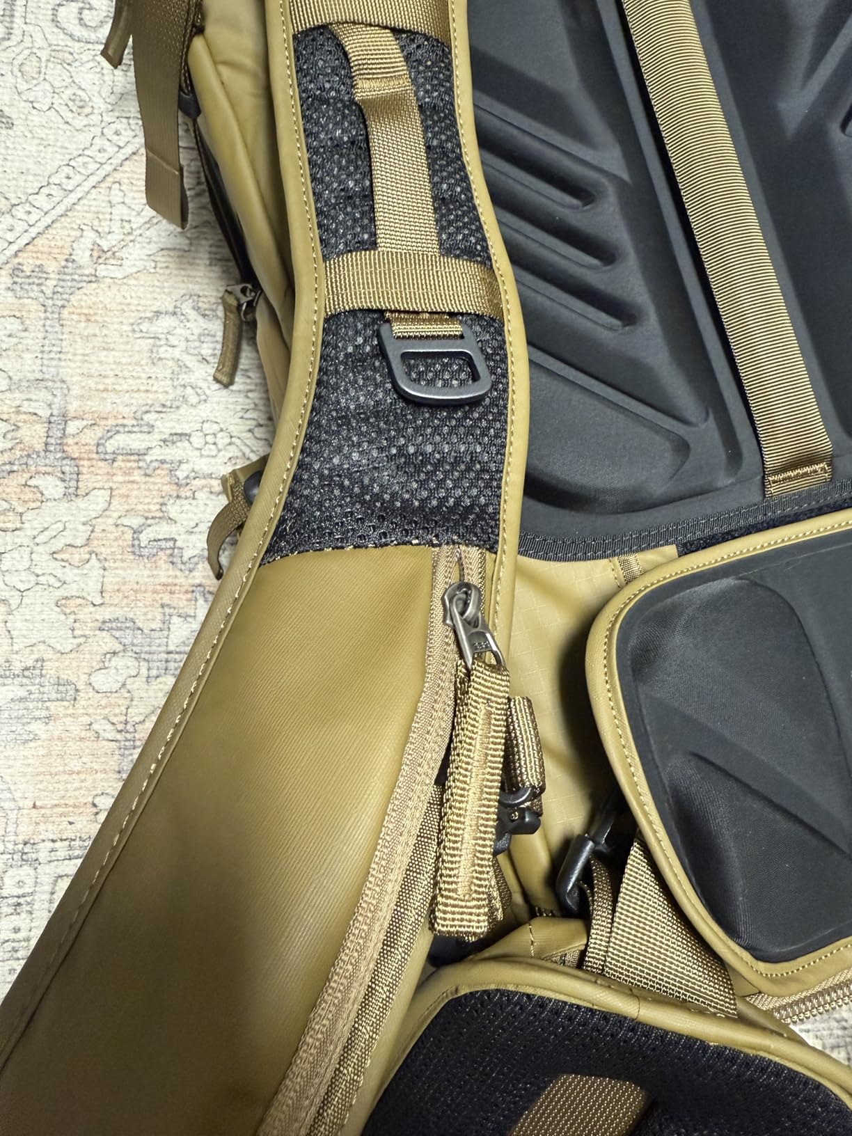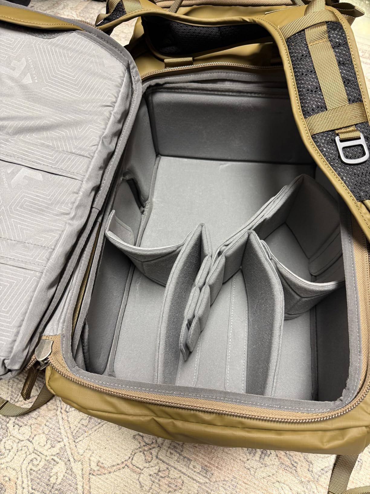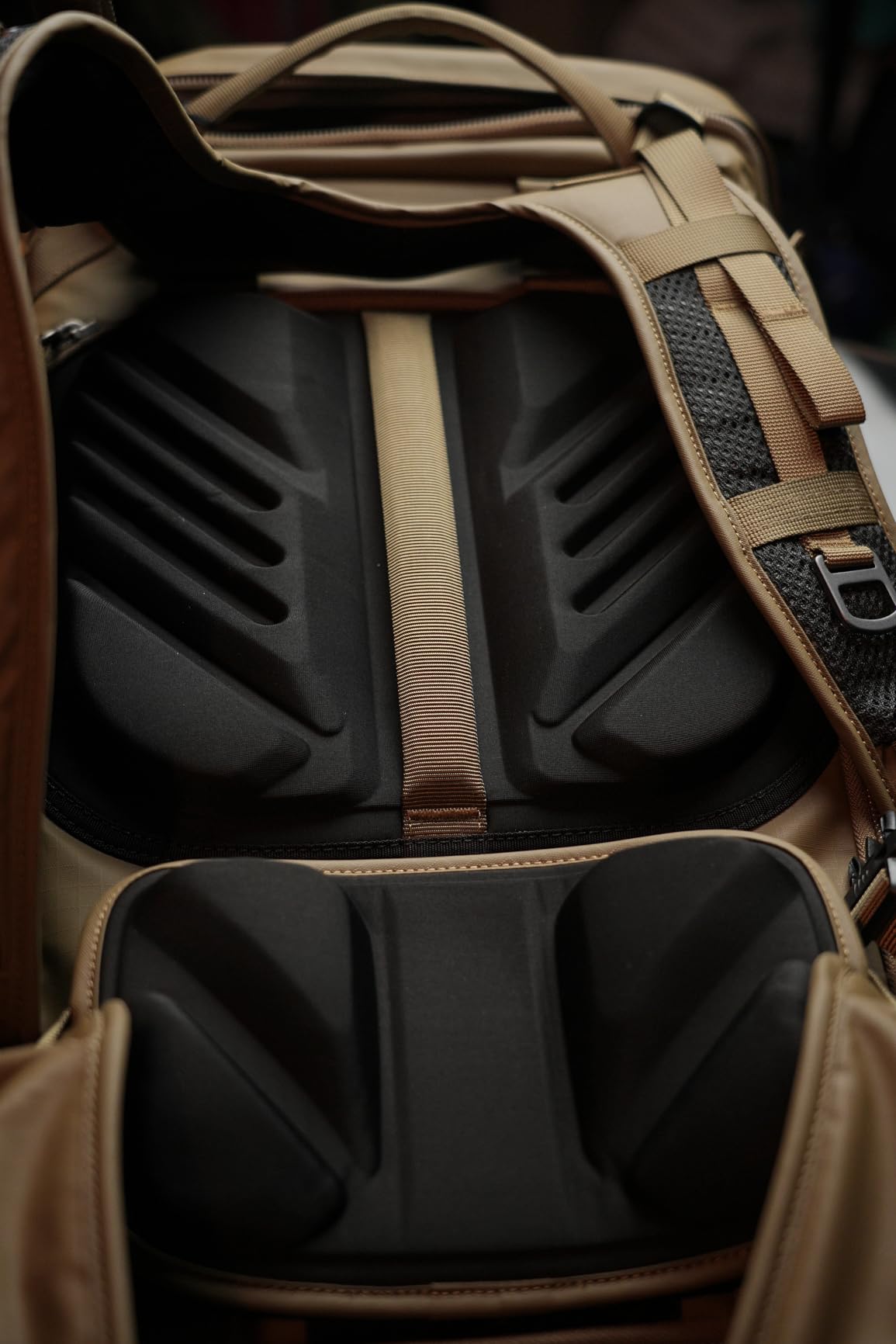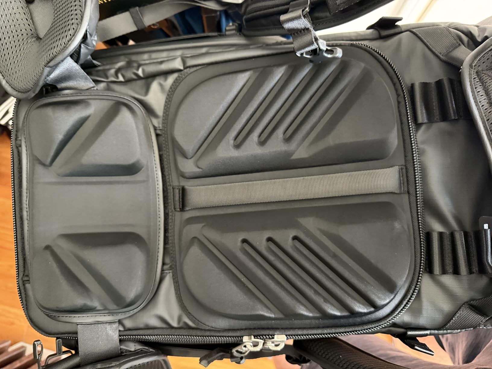 Al momento, questo è lo zaino più grande e completo che possiedo per la fotografia/videografia. Adoro questo design; K&F non smette mai di stupirmi. Possiedo anche altri zaini di marchi come PeakDesign, Manfrotto, Thule e LowePro. È grande; dubito fortemente che sia da 30 litri. Accanto al ProLight da 30 litri nella foto, si può notare la differenza. È uno zaino rigido, cosa che apprezzo molto, perché non voglio che gli oggetti si schiaccino l'uno contro l'altro. Internamente, ha una struttura che lo mantiene rigido, ma l'intero scomparto interno è come un "cassetto" rigido rimovibile, che trasforma lo zaino in uno zaino da trekking, ad esempio. La fodera è decisamente impermeabile; questo è ovvio. Questo rivestimento è ideale per pulirlo con un panno umido e pulirlo in una sola volta. Ha buone regolazioni, tra cui una tracolla sul retro e una maniglia superiore "man-down", come quelle in stile militare. È dotato di buone regolazioni e di una tracolla sul retro, oltre a una maniglia superiore "man-down", simile a quella degli zaini militari. Lo schienale ha un design ergonomico e ben ventilato, e il supporto lombare è fantastico. ☝