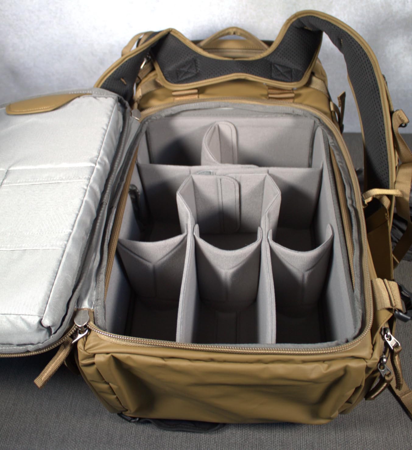 Sono assolutamente entusiasta di questo zaino top di gamma. Tutto, assolutamente tutto, è splendidamente rifinito, ben progettato e di qualità eccezionale. Fin dal primo sguardo, fa un'ottima impressione. L'imbottitura è spessa e morbida, ci sono tasche ovunque, le cerniere sono incredibilmente robuste e le cinghie sono facilmente regolabili. Come spesso accade oggigiorno, c'è uno scomparto superiore che può contenere un drone o, nel mio caso, piccole action cam. Sotto c'è lo scomparto principale, che può essere personalizzato con divisori in velcro. Questo scomparto è facilmente accessibile dal retro della borsa, ma anche lateralmente, permettendo di accedere rapidamente alla fotocamera senza dover togliere la borsa dalla schiena. La cintura in vita include un marsupio e, naturalmente, è possibile fissare un treppiede lateralmente. Sono incluse le coperture antipioggia e così via. È davvero una borsa ultra-completa: leggera, resistente ed elegante. Certo, c'è il prezzo significativo, ma lo trovo del tutto giustificato per un professionista o un appassionato che vuole concedersi un piccolo lusso. Ben fatto, KF!