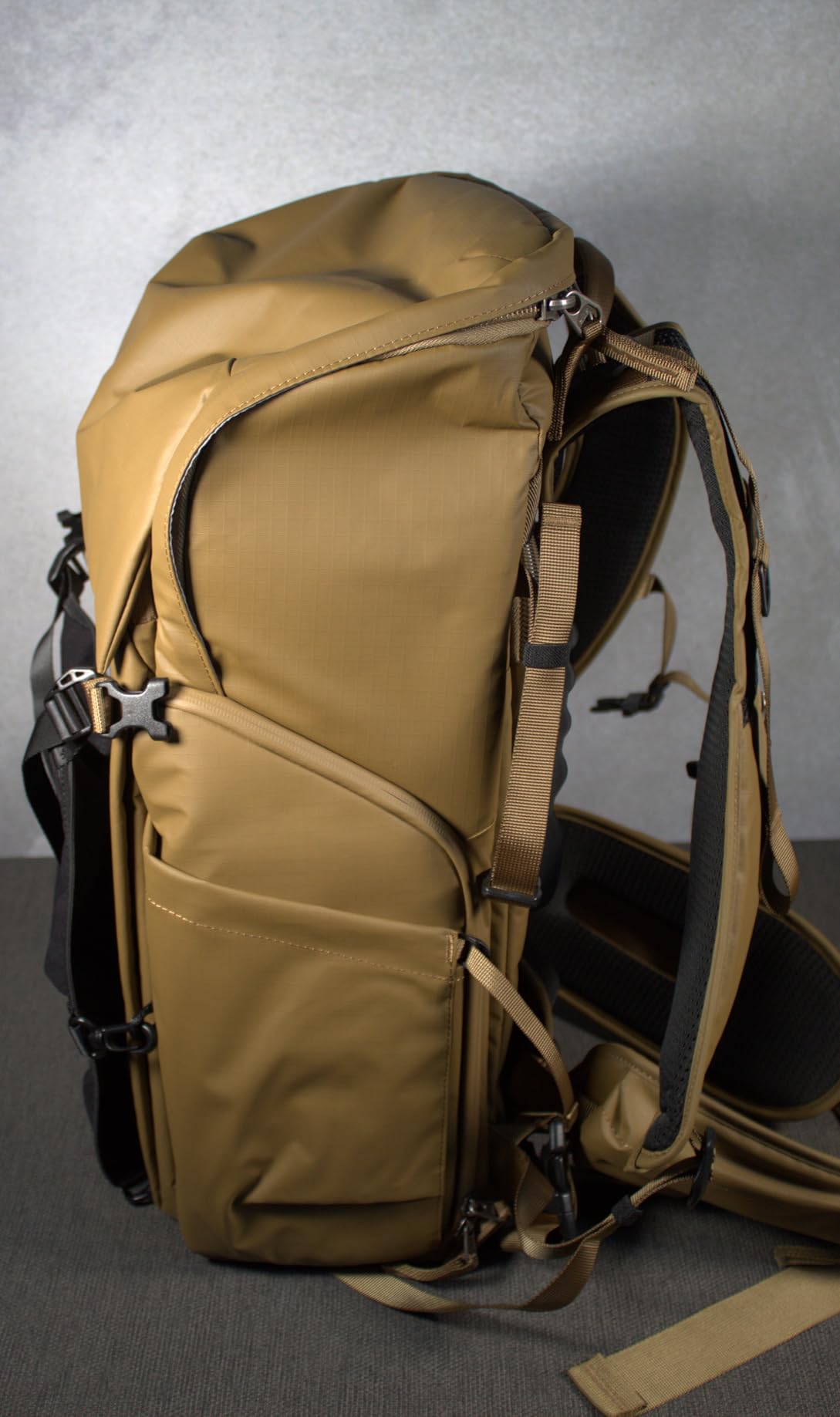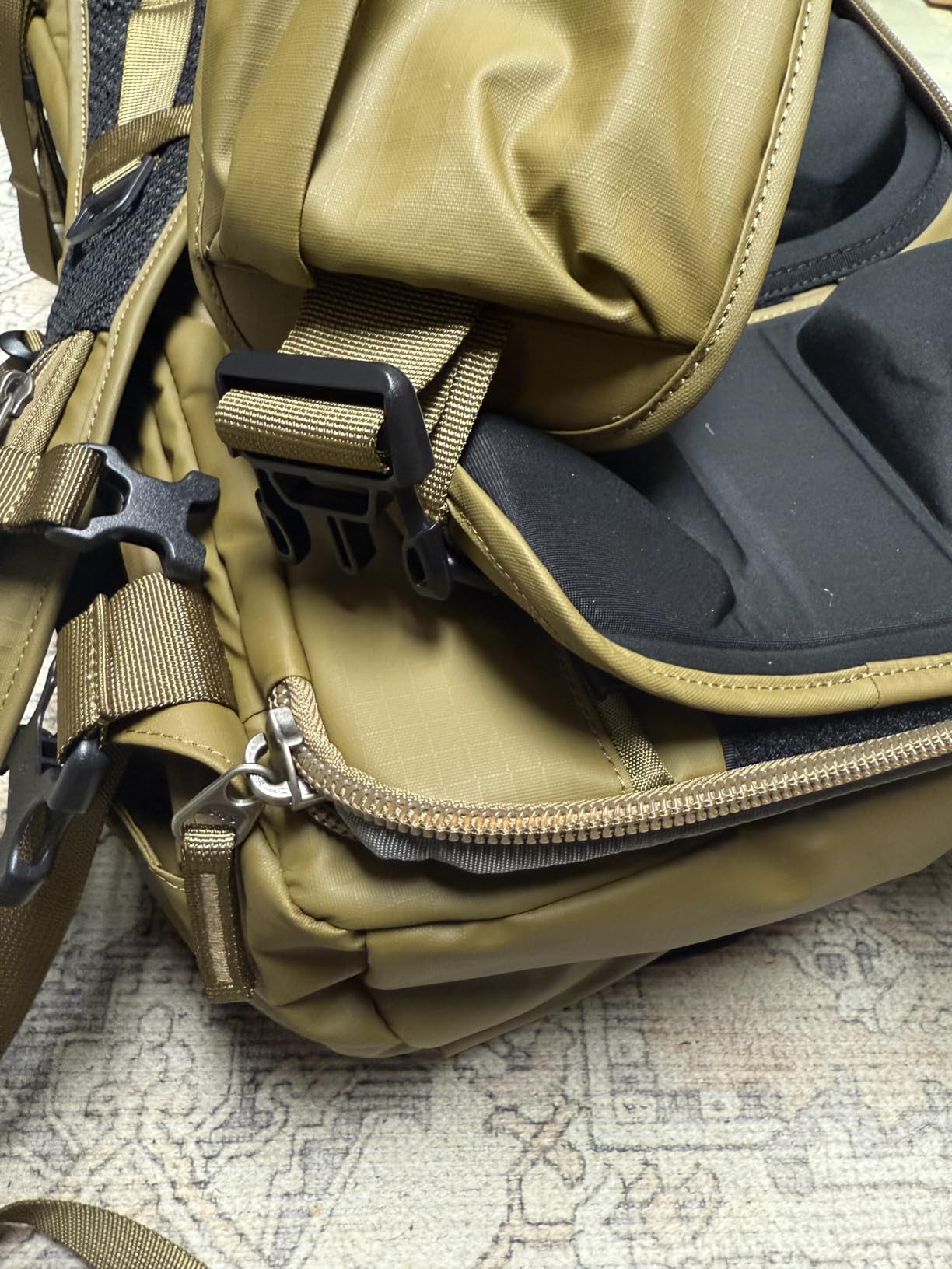 Volevo amare questo zaino perché sembra molto ben progettato, con un sacco di clip e fermagli ovunque per renderlo molto versatile e funzionale, ma l'ho usato in un viaggio recente ed era molto scomodo. Può contenere una discreta quantità di attrezzatura. Lo stile è super cool, ma se lo si porta con sé, risulta molto pesante e affatica la schiena. Le dimensioni sono piuttosto grandi e uno zaino vuoto sembra pesare 2,3 kg. Credo che questo sia dovuto al materiale molto spesso e impermeabile, ma significa anche che il tessuto spesso e pesante rende difficile aprire e chiudere le cerniere, quindi si teme di doverle aprire. Il tessuto è anche molto rigido. È molto efficace nel proteggere dalla pioggia e tutte le cuciture e l'imbottitura sembrano di altissima qualità e ben cucite. Devo solo togliere una stella perché non è uno zaino comodo da indossare. Inoltre, ci sono un sacco di cinghie che penzolano dappertutto. Se cercate qualcosa che resista alle intemperie, ma non vi preoccupa il mal di schiena, allora questo zaino è perfetto. Inoltre, ci sono delle piccole tasche sulle cinghie e sui lati che non ho mai usato perché il tessuto è troppo rigido e le tasche sono piccole. È difficile infilarci più di qualche batteria.