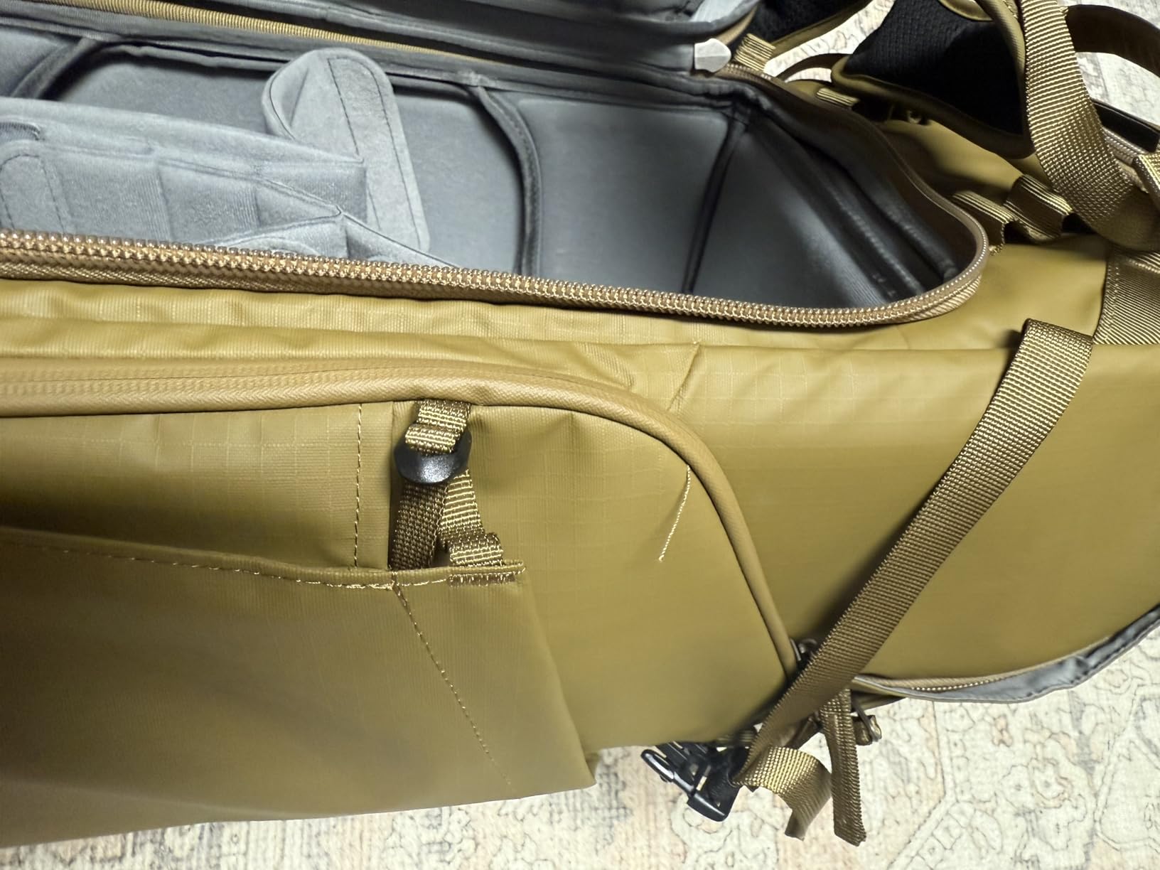 Borsa estremamente impressionante, con tanti piccoli dettagli che la distinguono. È una borsa pensata per l'escursionismo/trekking, con un fischietto di sicurezza sulla clip superiore e due marsupi per snack o piccoli accessori. Il materiale della borsa è impermeabile, in fibra sintetica di poliestere che non è il mio preferito ma che si adatta bene alle condizioni meteorologiche avverse. È liscia e, in un certo senso, similpelle, e preferisco la consistenza e la sensazione della tela. Le cuciture sono ottime e la qualità delle cerniere è di prim'ordine. La borsa è progettata con cura, con numerose tasche e piccoli spazi all'interno per riporre oggetti come schede di memoria, batterie e altro. Ha una parte superiore abbastanza grande da contenere alcuni vestiti e una parte posteriore che può contenere bene una giacca o una coperta. Pur essendo una borsa più grande, ha un vano di medie dimensioni per obiettivi/fotocamere. Probabilmente puoi trasportare un obiettivo 70-200 e 2 corpi macchina con obiettivi, ma non è esattamente abbastanza grande per teleobiettivi mostruosi o due fotocamere, un teleobiettivo e un drone o qualcosa del genere. Può contenere tranquillamente qualcosa come un DJI Mini, il controller, una fotocamera e 2 obiettivi. Viene fornito con una comoda custodia per la batteria con montaggio in velcro e patta in velcro, davvero comoda. Le cinghie sono molto comode e regolabili, e c'è una piccola tasca su ogni cinghia abbastanza grande da contenere una barretta di cereali o proteine. Ci sono anche ganci per borraccia su ogni cinghia. Ho scoperto, con oltre 20 anni di esperienza in fotografia, che le borse per fotocamere sono una di quelle cose che si possono continuare a comprare cercando di trovare quella perfetta. Per molte persone, soprattutto per chi pratica attività all'aperto, posso dire con sicurezza che questa sarebbe una borsa di fascia alta. È progettata davvero in modo intelligente. L'unica ragione per cui non la prenderei in considerazione è se hai bisogno di molto più spazio, e per questo prenderei in considerazione quella grande, oppure se hai davvero più soldi da spendere e vuoi acquistare qualcosa come una borsa Thinktank.