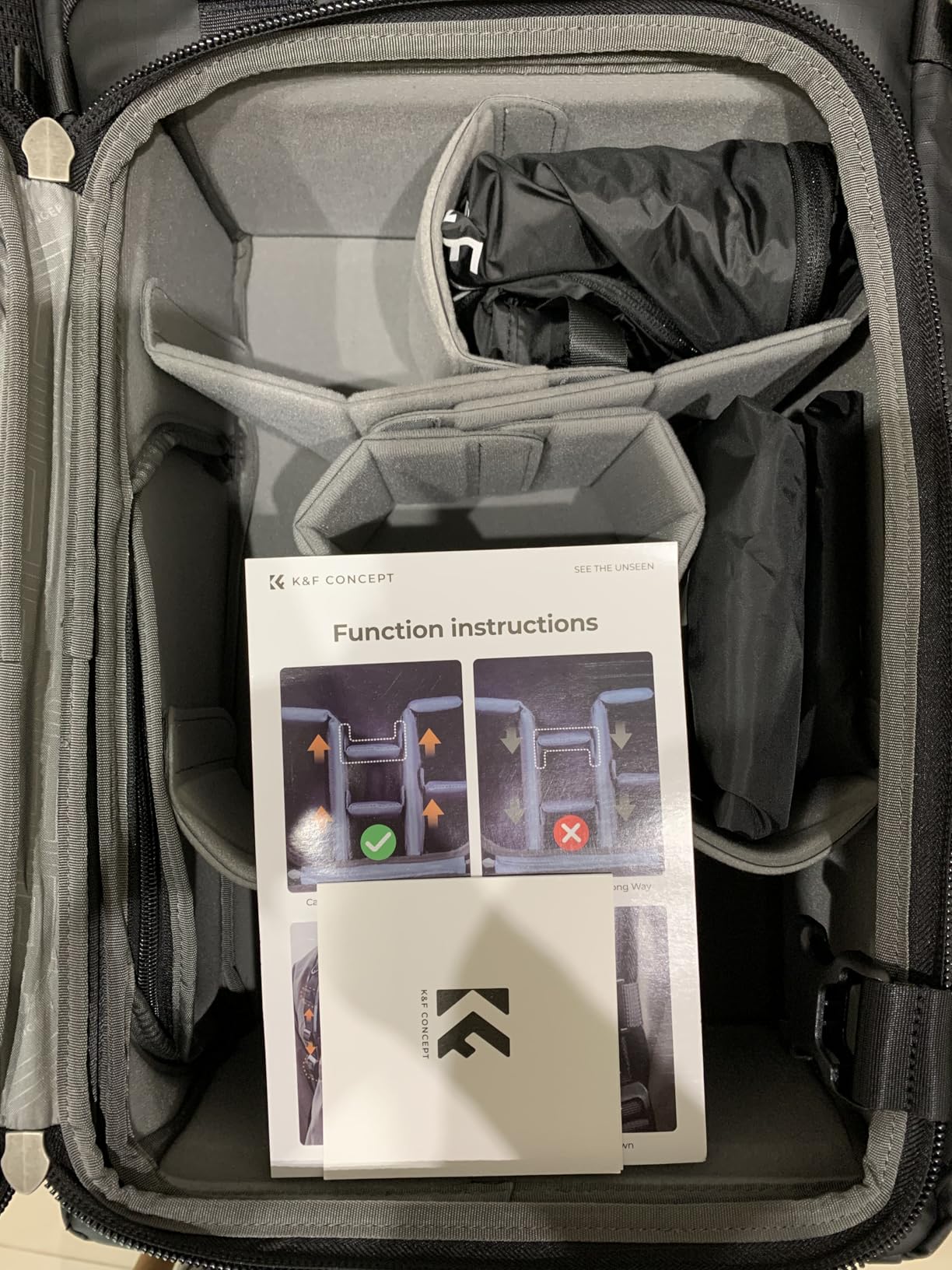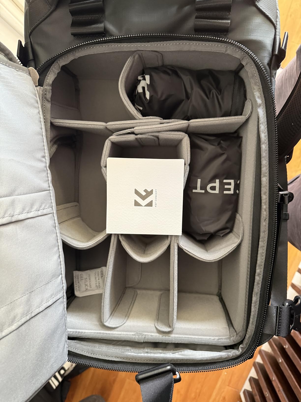 Questa è la mia prima esperienza con K&F Concept e devo dire che questo zaino è davvero spazioso e ben progettato, pensato per chi ha bisogno di trasportare tutta la propria attrezzatura fotografica ma non vuole rinunciare alla comodità di avere tutto ben organizzato in un'unica borsa. L'interno è spazioso e facilmente organizzabile grazie ai divisori modulari, ideali per fotocamere, obiettivi, droni e accessori: nel mio caso, ho messo un Mavic Mini Combo, un gimbal DJI, una reflex digitale Nikon e una fotocamera istantanea Fuji con pellicola... e c'era ancora spazio! È comodo tenere separati gli effetti personali nello scomparto superiore e gli oggetti più piccoli in quello laterale, che ha anche una tasca in velcro (adatta per schede SD, pellicole e piccoli oggetti). Le ampie tasche sulla cintura e sugli spallacci sono altrettanto comode. La costruzione è solida, con materiali resistenti e dettagli pensati per l'uso sul campo, come la cerniera laterale ad accesso rapido e la copertura antipioggia integrata. Molto utili anche le numerose tasche interne e lo scomparto per laptop. È facile da trasportare anche a pieno carico grazie agli spallacci larghi, allo schienale traspirante e alla cintura lombare regolabile. Apprezzati i numerosi accessori, utili per l'organizzazione interna. Il peso non è trascurabile, ma è il prezzo da pagare per i materiali utilizzati. È giusto dirlo.