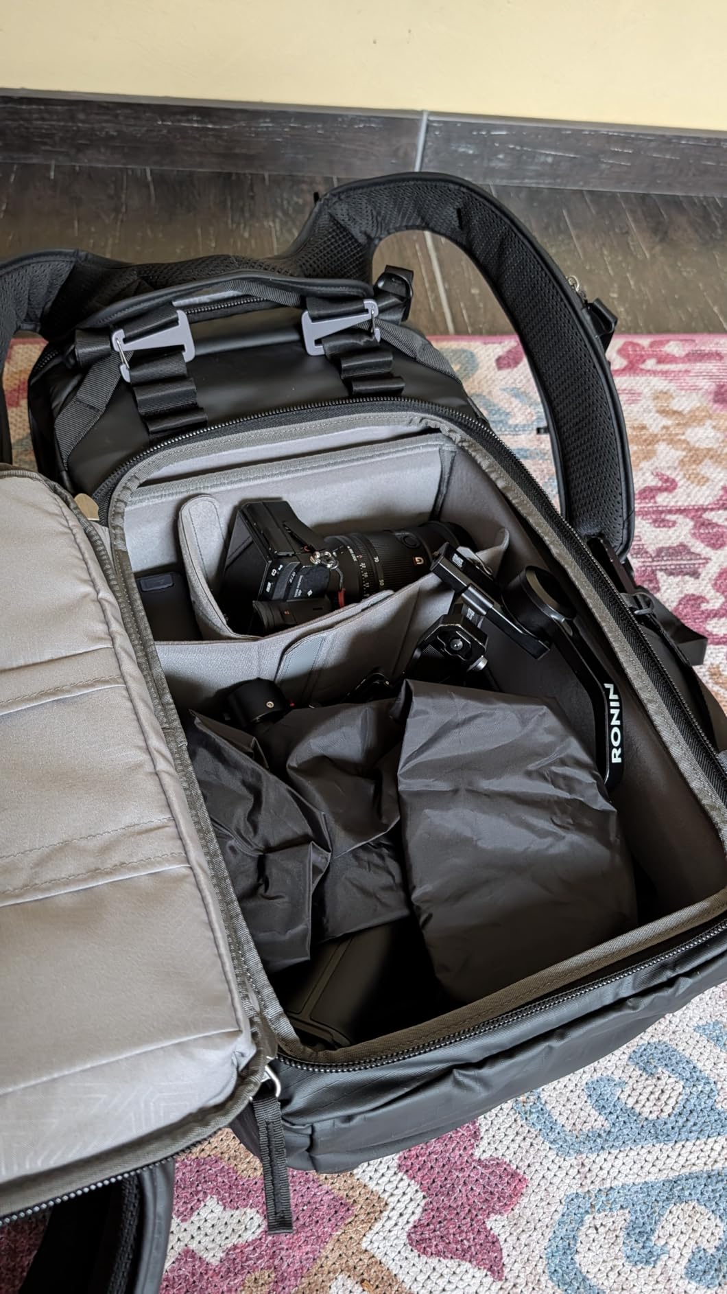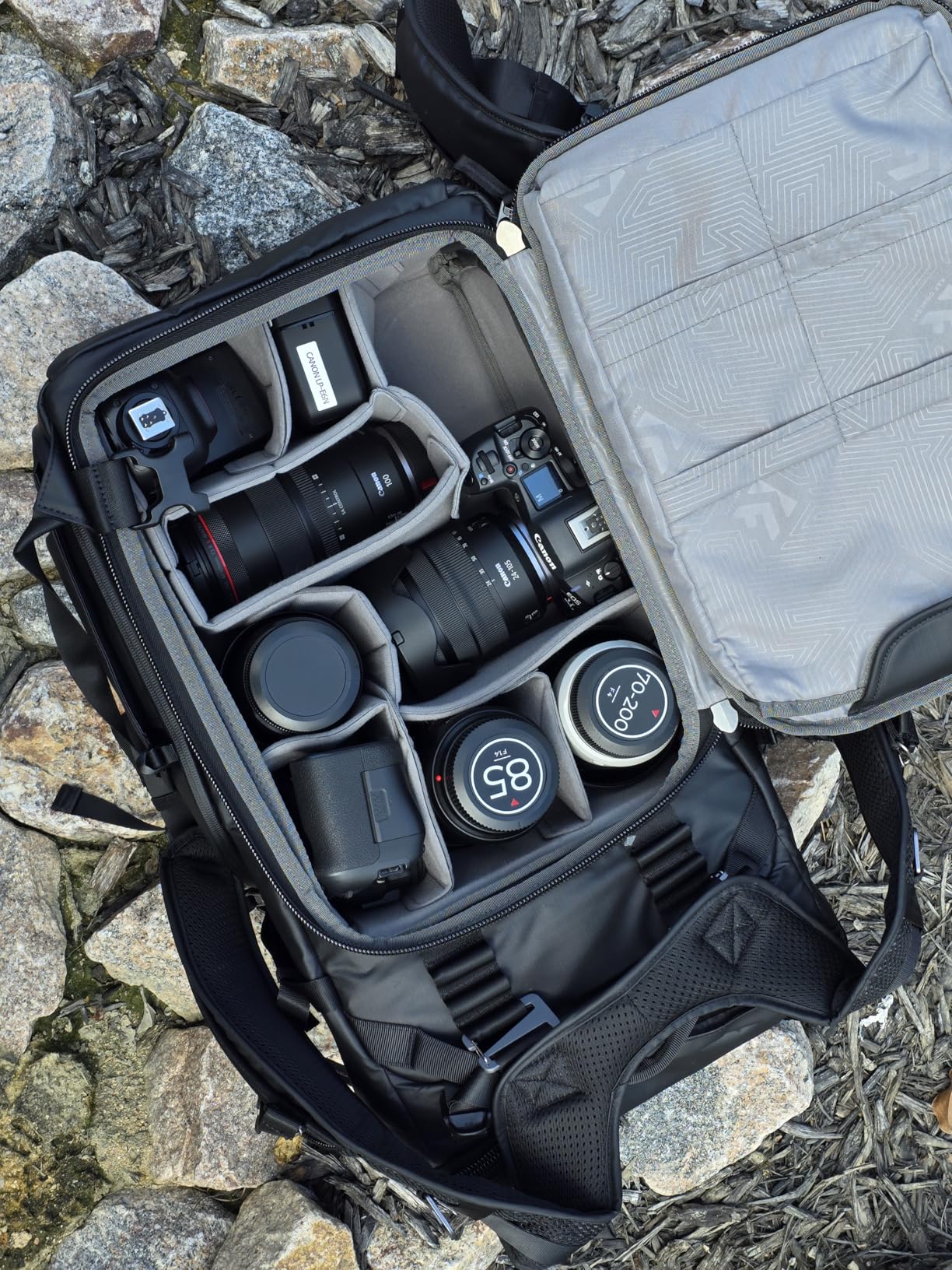 K&F non smette mai di stupire con la cura e il design che mettono nei loro gadget e accessori. Ho anche un bel po' di filtri. Ma questa borsa è semplicemente di un altro livello. Ho una Tortuga Outbreaker e ho sempre pensato che fosse la borsa più comoda che abbia mai avuto, ma questa è ancora più comoda. Soprattutto il modo in cui le imbottiture sono posizionate sulla schiena. Si sente davvero il ricambio d'aria. E anche a pieno carico, con circa 10 kg di attrezzatura, non si surriscalda sulla schiena e non la sento pesante. I sollevatori di carico e la cintura arrivano proprio nel punto giusto. Mi piacciono le tasche sulla cintura. Ottime per un filtro da 77 mm ciascuna. L'accesso laterale è davvero comodo e la cerniera è davvero scorrevole. Quindi è abbastanza facile aprirla con una mano ed estrarre la macchina fotografica con l'altra. Altri dettagli semplicemente fantastici. Il vano porta-fotocamera rimovibile è un'ottima caratteristica perché mantiene la forma della borsa quando è inserita, ma è anche un comodo accessorio che posso portare con me e usare come location per le riprese fisse. Mi piace anche il supporto per treppiede. È sicuro e veloce da usare. Il vano superiore è abbastanza grande per un singolo cambio d'abito e magari uno spuntino. Ho dovuto trovare un posto per l'acqua nel vano portaoggetti. Quindi il resto del mio kit è una Lumix S5iiX in una gabbia Black Mamba, di solito con un 24-105 mm f/4, insieme al mio 50 mm e 85 mm, un kit microfono wireless, una Insta360 X5 e un piccolo kit di accessori. Altri prodotti per la pulizia e il kit filtri. Tutto si adatta perfettamente. Adoro questa borsa e ricevo sempre complimenti quando la indosso. Deve essere la migliore borsa fotografica di queste dimensioni che abbia mai avuto e non riesco proprio a pensare a come potrebbe essere migliorata. Penso che se mai dovessi viaggiare a lungo con essa, probabilmente avrei preferito la 40 litri.