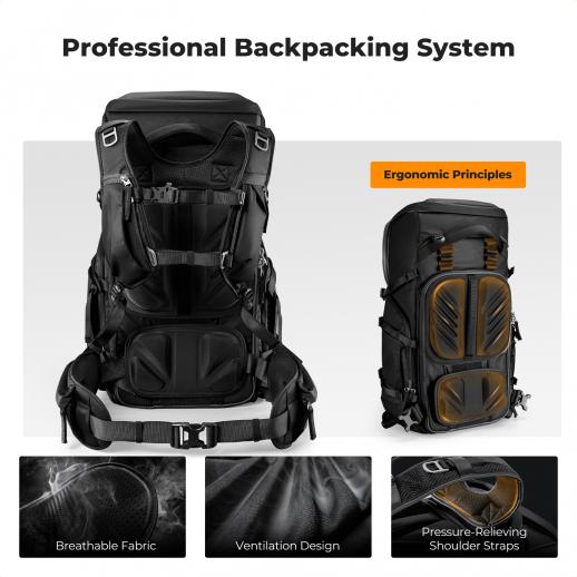 K&F Concept 40L Zaino Fotografico, Zaino Professionale impermeabile per DSLR con inserto rimovibile personalizzabile, spallacci regolabili, adatto per laptop da 15", attrezzatura fotografica - Backpack 40L Star Wander 01 (Nera)