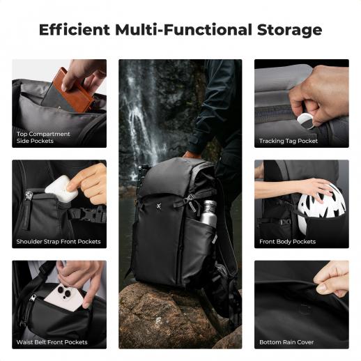 Al momento, questo è lo zaino più grande e completo che possiedo per la fotografia/videografia. Adoro questo design; K&F non smette mai di stupirmi. Possiedo anche altri zaini di marchi come PeakDesign, Manfrotto, Thule e LowePro. È grande; dubito fortemente che sia da 30 litri. Accanto al ProLight da 30 litri nella foto, si può notare la differenza. È uno zaino rigido, cosa che apprezzo molto, perché non voglio che gli oggetti si schiaccino l'uno contro l'altro. Internamente, ha una struttura che lo mantiene rigido, ma l'intero scomparto interno è come un "cassetto" rigido rimovibile, che trasforma lo zaino in uno zaino da trekking, ad esempio. La fodera è decisamente impermeabile; questo è ovvio. Questo rivestimento è ideale per pulirlo con un panno umido e pulirlo in una sola volta. Ha buone regolazioni, tra cui una tracolla sul retro e una maniglia superiore "man-down", come quelle in stile militare. È dotato di buone regolazioni e di una tracolla sul retro, oltre a una maniglia superiore "man-down", simile a quella degli zaini militari. Lo schienale ha un design ergonomico e ben ventilato, e il supporto lombare è fantastico. ☝