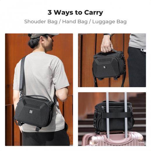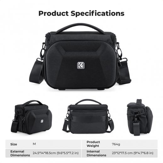 K&F Concept Borsa per Fotocamera a Tracolla, Borsa Fotografica Impermeabile in eva hardshell con tracolla regolabile, Compatta Custodia per Macchine Fotografiche Reflex Obiettivo Treppiede-M