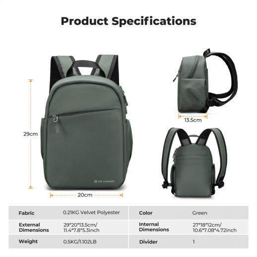 K&F CONCEPT Zaino Fotografico Professionale, Zaino Fotografico Ligera 5L Resistente al Agua para Uso Diario y Viajes, Compatible con Sony/Canon/Nikon, Compacto con Compartimento para iPad, Verde