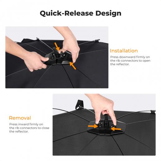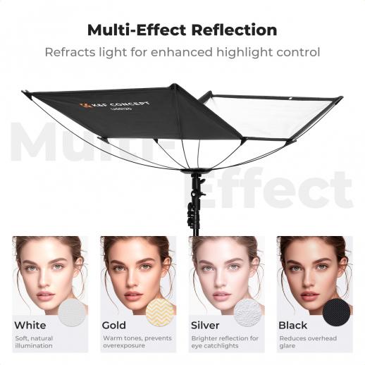 - * 【Design curvo: Il riflettore curvo imita la curvatura dell'occhio umano, riflettendo la luce a forma di arco e rendendo gli occhi più luminosi nei ritratti. Elimina le ombre ed è adatto a luci stroboscopiche, luci singole, luci a LED e persino alla luce solare naturale.