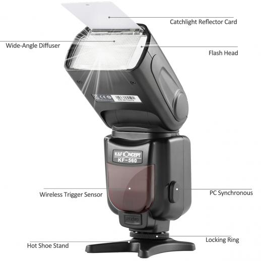 Flash SpeedFite universale KF-560 con display LCD compatibile con fotocamere Canon Nikon DSLR