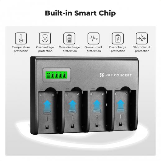 K&F Concept Caricabatterie NP-F a 4 canali con display LCD per batteria per videocamera Sony NP-F970, NP-F960, NP-F950, NP-F930, NP-F770, NP-F750, NP-F570, NP-F550, spina UK