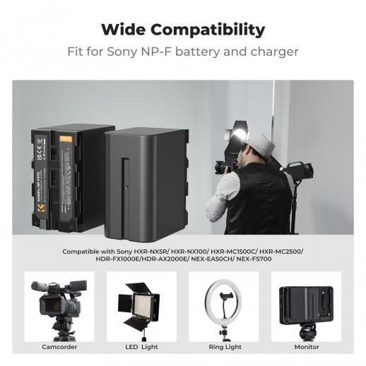 - * 【Ampia compatibilità】La batteria NP-F970 è completamente compatibile con le fotocamere e i caricabatterie originali Sony, completamente decodificata senza effetto memoria. È adatta per le batterie Sony NP-F960/NP-F950/NP-F930/NP-F770/NP-F750/NP-F550/NP-F570 e funziona con videocamere come HXR-NX5R/HXR-NX100/HXR-MC1500C/HXR-MC2500/HDR-FX1000E/HDR, nonché luci fotografiche, monitor, cursori motorizzati per fotocamere, sistemi di follow focus wireless e altro ancora.