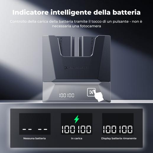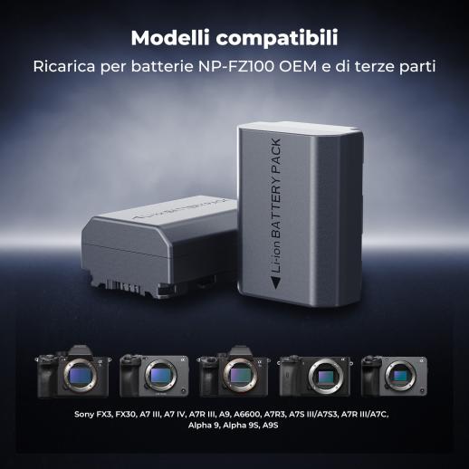 K&F CONCEPT NP-FZ100 2600mAh Doppia batteria con caricabatterie rapido modulare Compatibilità per Sony A7 IV A7R III A7R IV A9 A6600 A7R3 A7S III/A7S3 A7C Alpha 9 Alpha 9R A9R