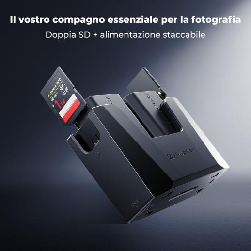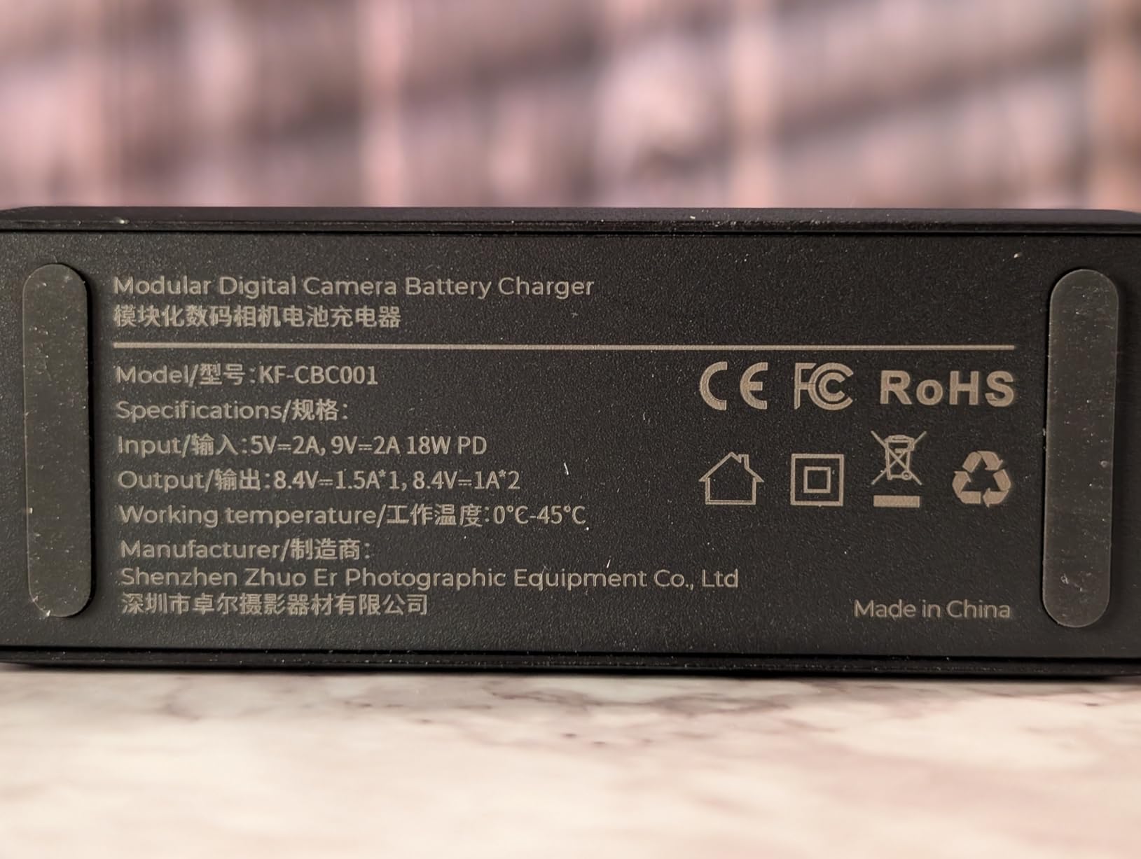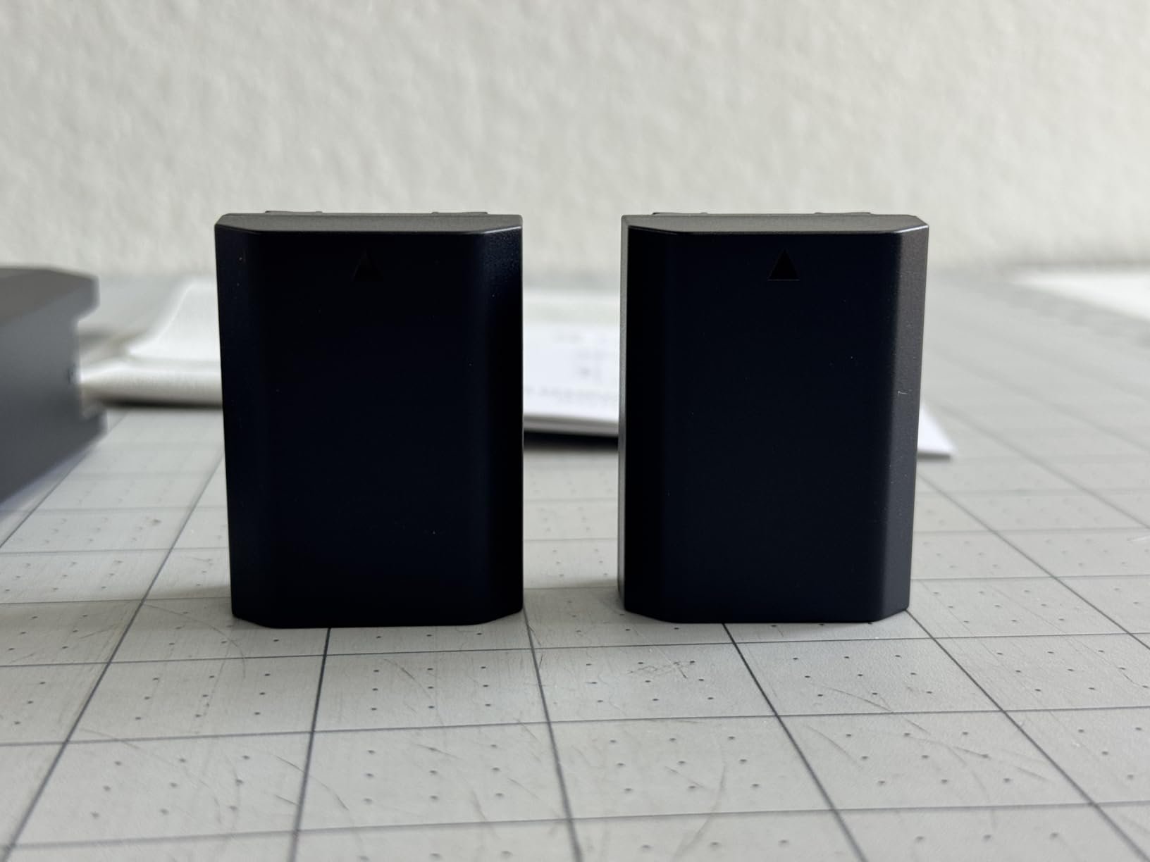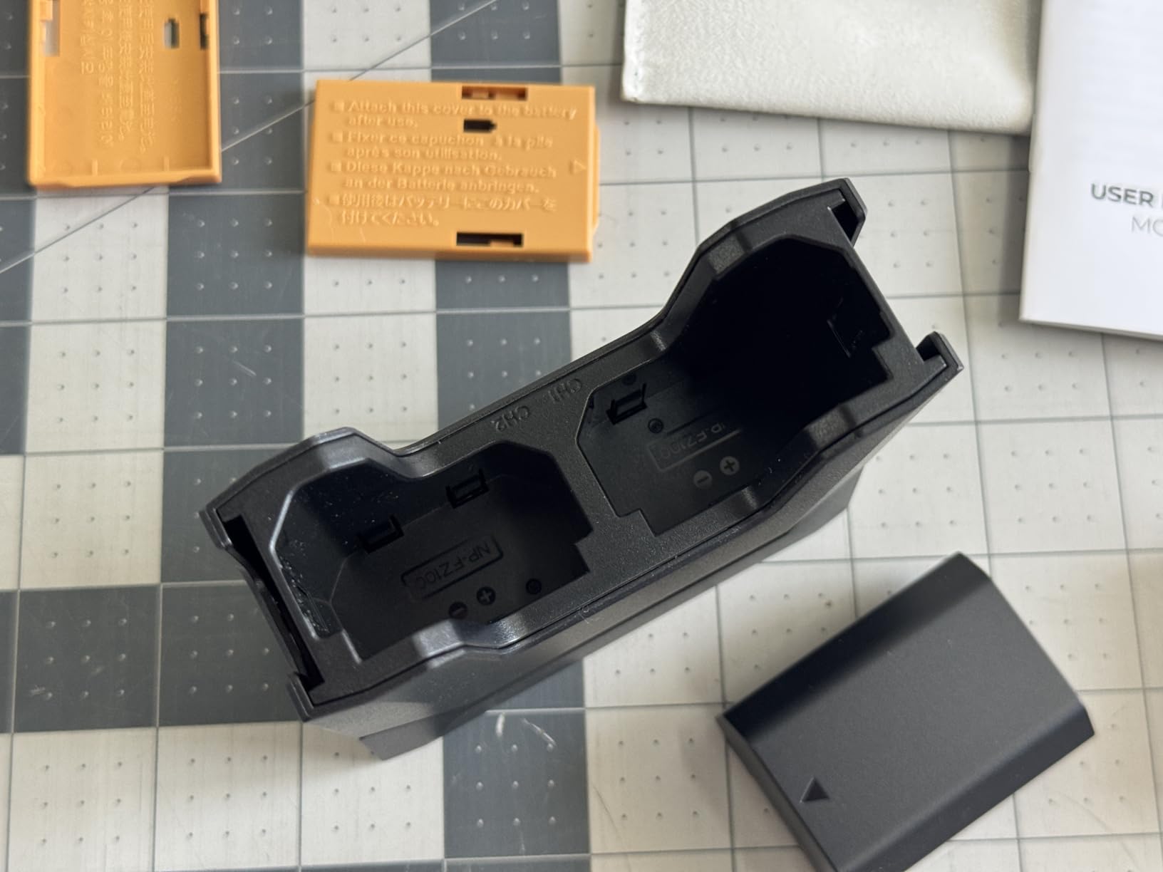 Il prodotto arriva in una bella scatola di cartone contenente le due batterie, il caricabatterie, un cavo di ricarica USB-C/USB-C e un piccolo manuale utente. La base di ricarica è comodamente divisa in due parti che si incastrano. La parte superiore, una volta staccata, consente di trasportare le batterie proteggendone i contatti e presenta anche slot laterali per schede di memoria SD aggiuntive. La parte inferiore, una volta agganciata alla parte superiore, consente di controllare facilmente il livello di carica della batteria semplicemente cliccando sul logo del produttore sulla parte anteriore. Collegando le batterie all'alimentazione tramite la porta USB-C, si caricano. Le batterie si caricano più velocemente di quelle originali, nonostante la maggiore capacità (2600 mAh contro 2280 mAh). Durante l'utilizzo delle batterie, non ho ricevuto alcun avviso di surriscaldamento, anche provando a registrare video alla massima risoluzione (operazione che consuma molta energia). Nell'uso misto standard di foto e video, le batterie hanno resistito bene, offrendo una maggiore durata e una diminuzione costante della carica. In genere, le batterie di bassa qualità causano fluttuazioni nel livello di carica rimanente e possibili messaggi di errore. Tutti i materiali utilizzati sono di buona qualità e il prodotto è ben progettato, sia esteticamente che per durare.