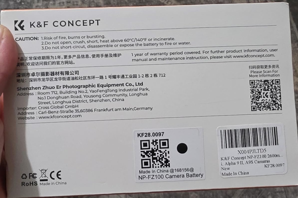 Sono molto buone e hanno una capacità maggiore rispetto alle batterie OEM, il che è sempre un vantaggio. Ho diversi prodotti K&F nella mia borsa, quindi mi sento a mio agio con le loro batterie. Le ho caricate tutte e il display del caricabatterie è davvero bello, mostrando l'indicazione della carica. Oggi ho dovuto scattare una foto e volevo provarle. Ho scattato per circa un'ora e ho scattato un totale di poco meno di 500 fotografie, partendo dal 100% e finendo al 72%. Una cosa da notare: non ho ricevuto l'avviso di batteria che indicava che potrebbe non funzionare correttamente né sulla mia A7RV né sulla mia FX30. Sono sicuro che la situazione cambierà con il prossimo aggiornamento del firmware. Nel complesso sono super soddisfatto di queste batterie.