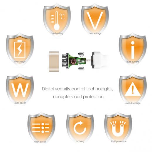 Beschoi Caricabatteria per auto USB Caricatore per veicolo Caricabatterie USB a carica ultrarapida (3 porte tipo 3,4 A) iPhone 6s / 6s Plus / 6/6 Plus / 6/6 Plus / iPad / iPod / Android / Galaxy S6 / S6 Edge ultra-compatto ecc. ( Bianco + dorato)
