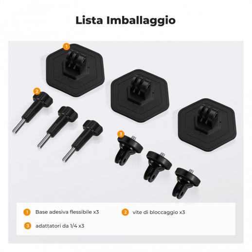 K&F Concept 3Pack Supporto Alessibile Adesivo per Casco per GoPro Hero 13/12/11/10/9/8/7 Black, DJI Osmo Action 3/4/5 Pro, Insta360 X5 X4 X3 Superfici Curve Piatte Adesive