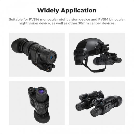 - * Fornisce un controllo preciso della regolazione dell'apertura per controllare la quantità di luce in ingresso, adatto per apparecchiature per la visione notturna monoculare PVS14 e binoculare PVS14, nonché altre apparecchiature di calibro 30 mm.