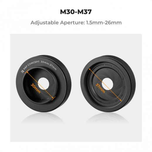 - * Fornisce la funzione di adattatore, dimensioni regolabili M30 - M37, apertura 1,5 - 26 mm, consente di installare diverse dimensioni di filtri sull'obiettivo, aumenta l'applicabilità e la flessibilità dell'obiettivo e riduce il costo di acquisto.
