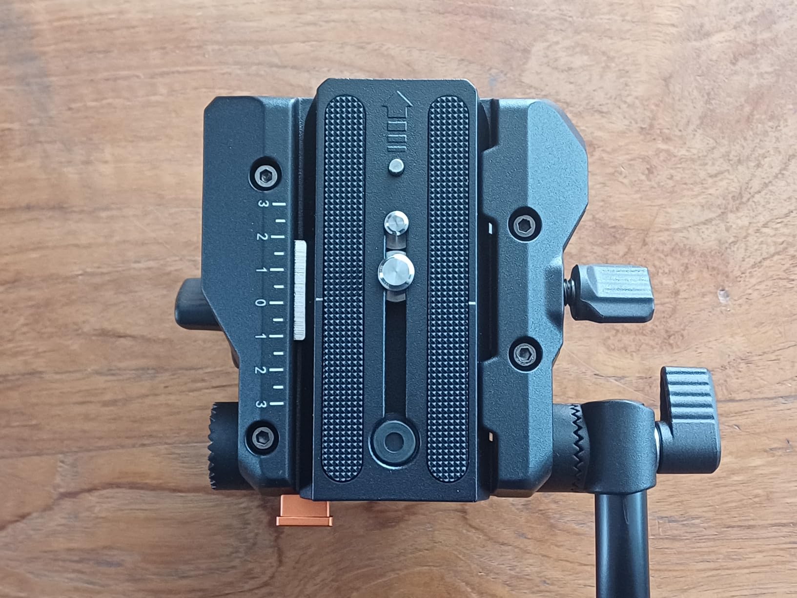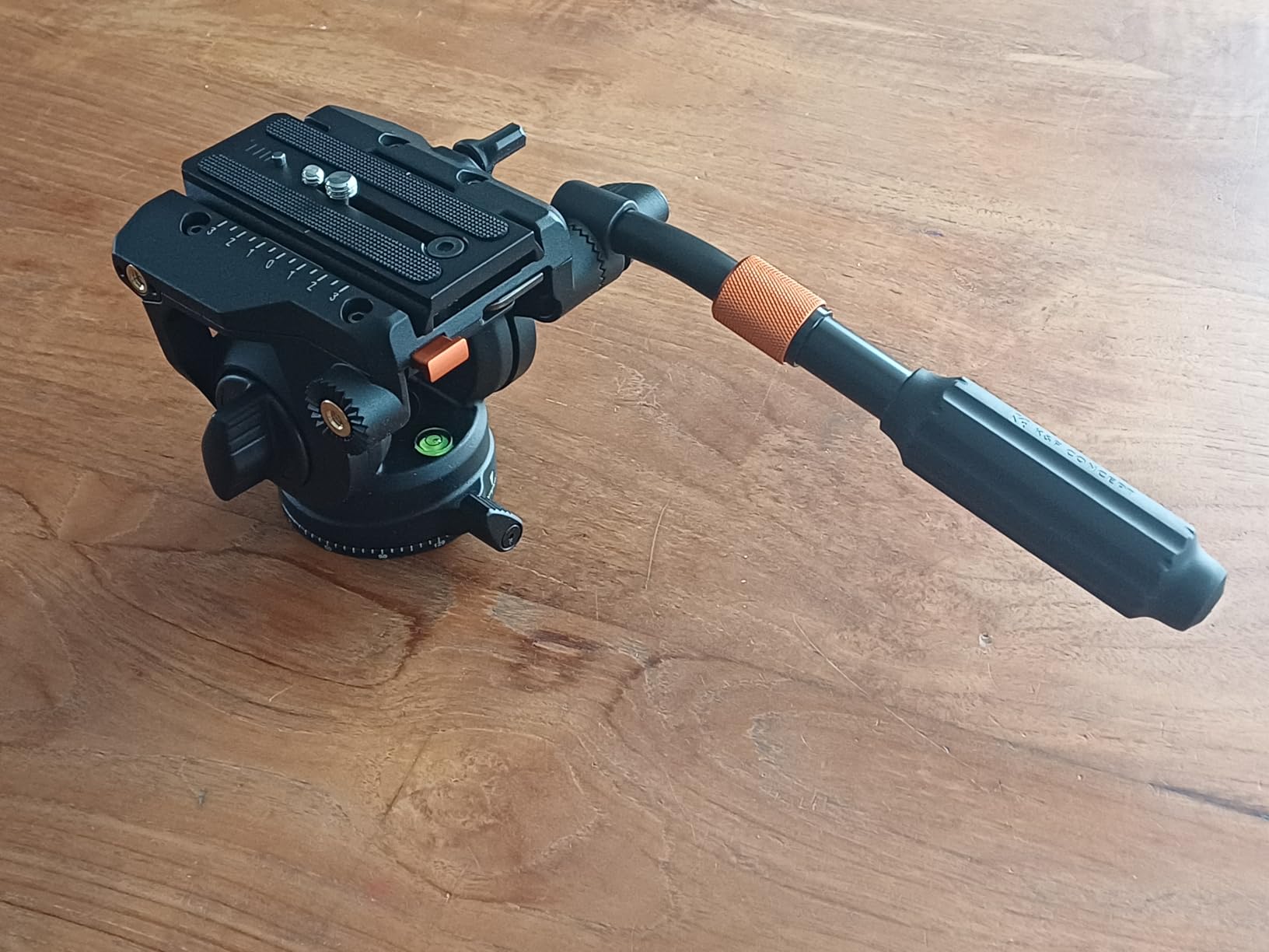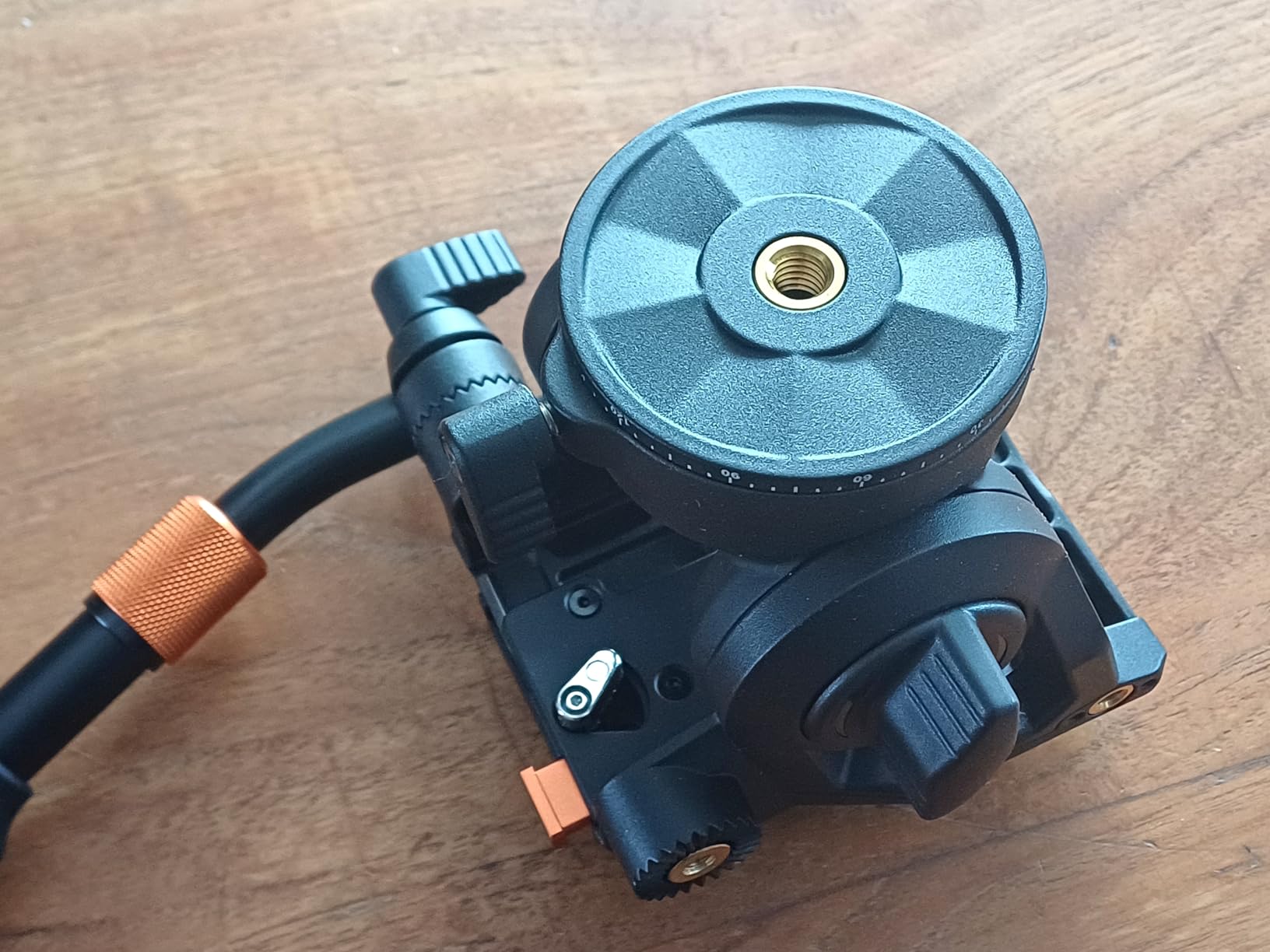 Questa testa video per treppiede è dotata di un braccio telescopico e di una piastra bloccabile tipo Arcaswiss. La testa si fissa alla piastra di un treppiede tramite una filettatura classica di grandi dimensioni. La fluidità della rotazione orizzontale è decisa, ma in linea con le aspettative per panorami fluidi e progressivi. Una livella a bolla aiuta a mantenere il corretto posizionamento orizzontale. Anche la fluidità verticale e di rotazione è costante. Tuttavia, il rivestimento è un po' fragile ai graffi. Una testa video gradevole ed efficace.
