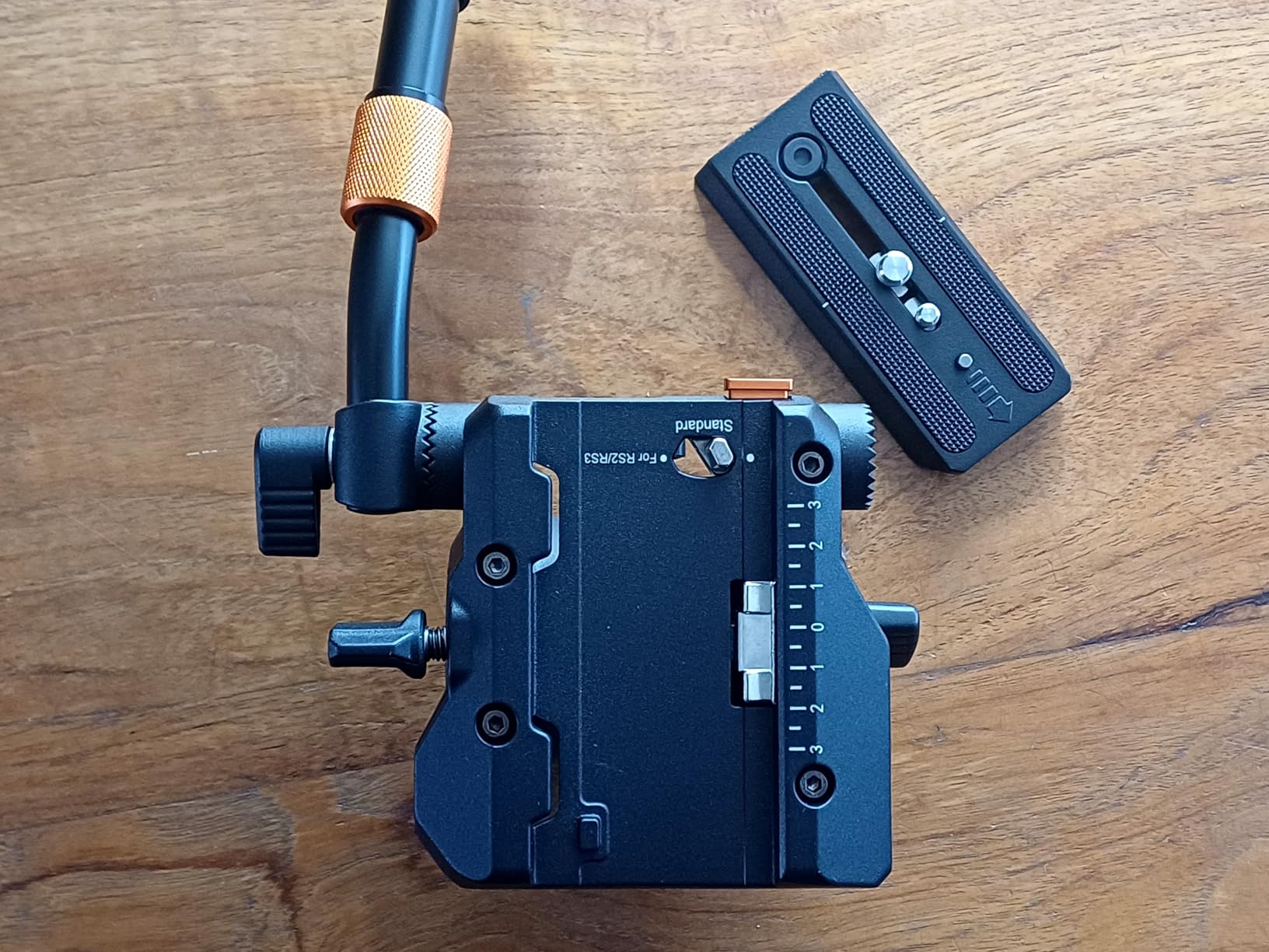 - * 【Base a Doppia Modalità】Design della base con piastra a sgancio rapido dual-mode, compatibile con DJI RS2/RS3/RS4 e piastre a sgancio rapido Manfrotto.È possibile passare con un solo tocco.