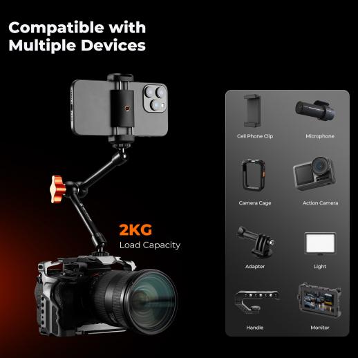 - * [COMBINAZIONE MULTIFUNZIONALE] - Il morsetto Magic Arm da 9,8 pollici di K&F Concept può essere utilizzato con una varietà di accessori per fotocamere. Che si scatti da angolazioni alte o basse, soddisfa diverse esigenze creative ed esplora diverse angolazioni di ripresa.