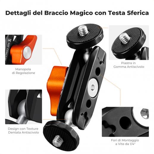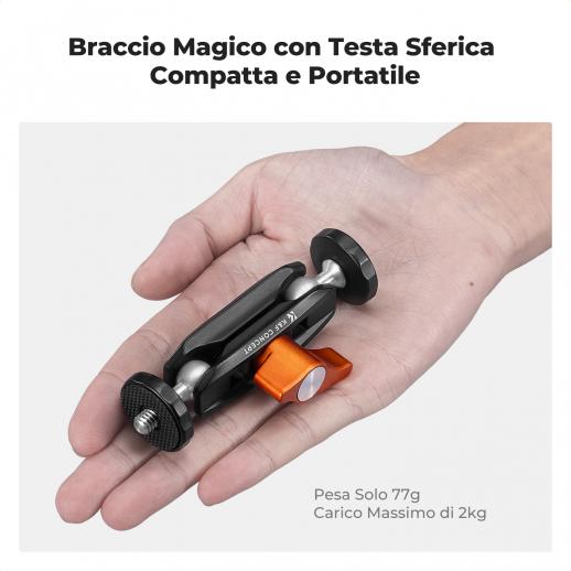 K&F Concept Braccio a Doppia Sfera, Mini Braccio Snodabile con Vite 1/4"-20, Testa a Sfera Girevole 360°, Brazo in Lega di Alluminio per Montaggio Fotocamera, Luce, Microfono, Monitor