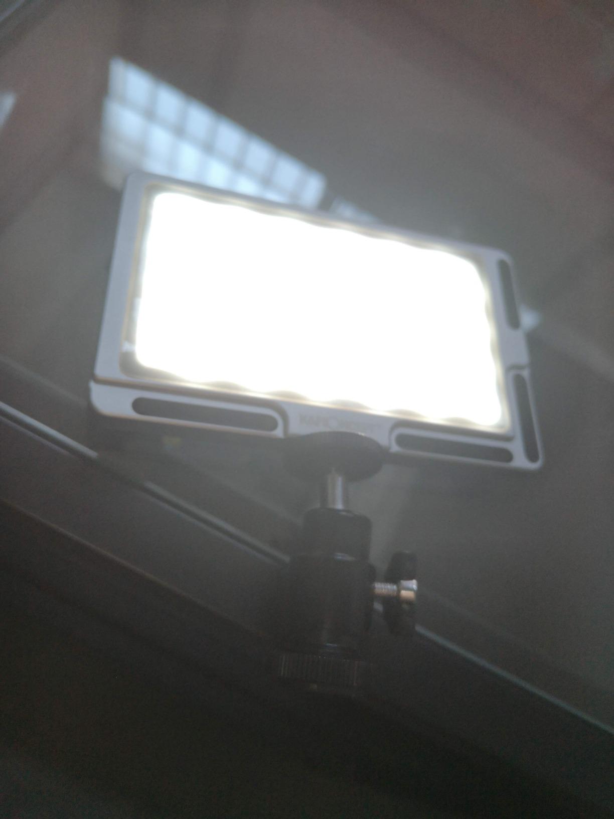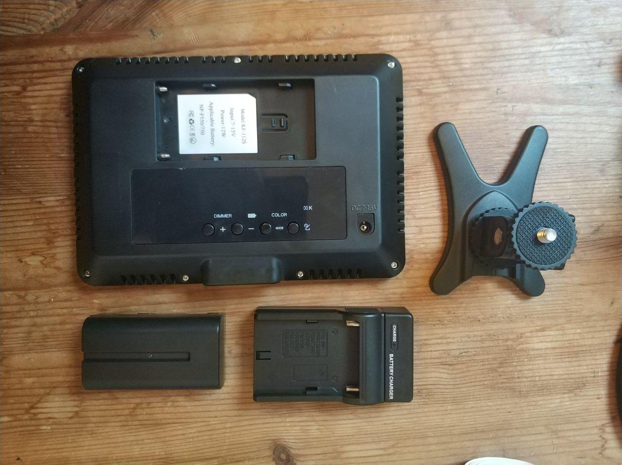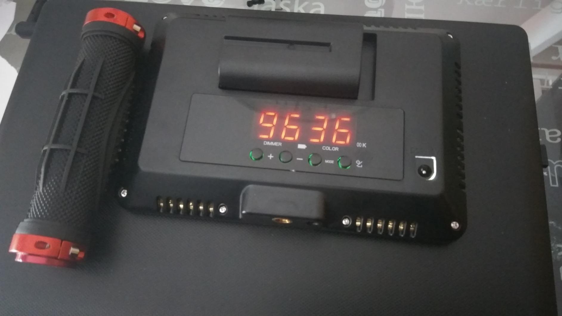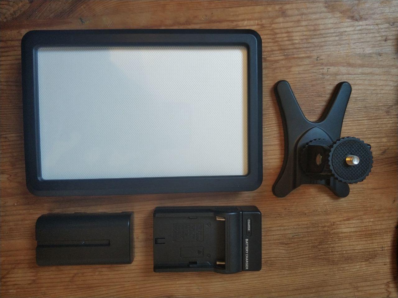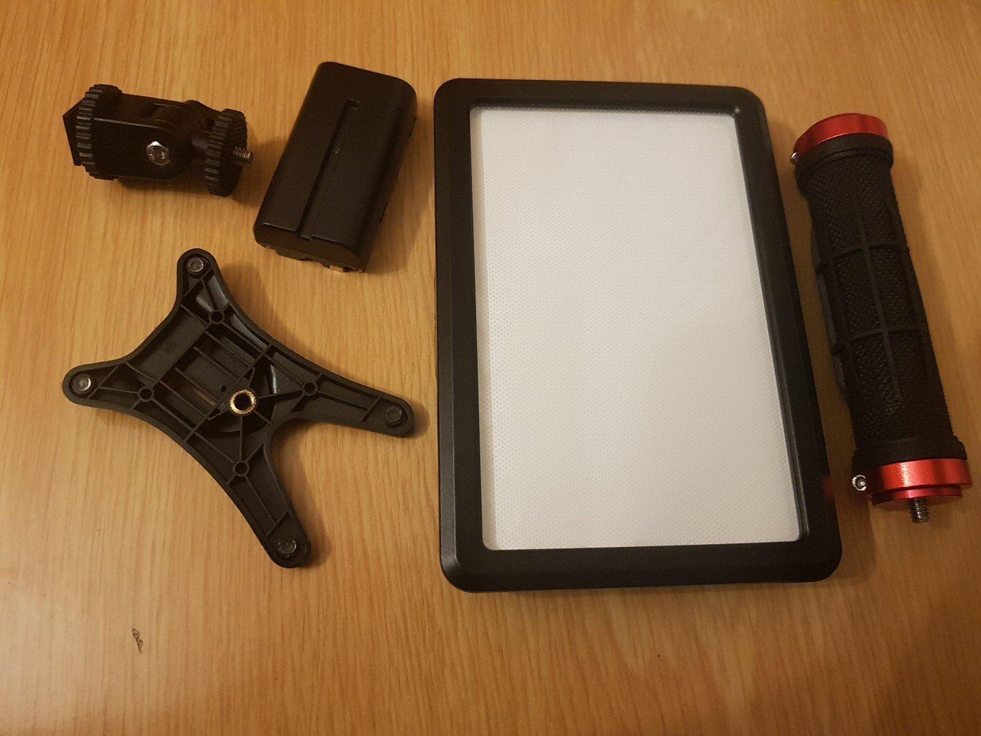 Offre una buona illuminazione, è possibile impostare sia l'intensità che il colore della luce. Ha molti accessori per montarlo su un treppiede o trasportarlo in mano. La batteria dura abbastanza a lungo, a seconda della potenza richiesta; il vantaggio è che, poiché può essere rimossa, è possibile inserirne subito un'altra e continuare a lavorare. Viene fornito anche con una borsa per il trasporto solo del pannello.