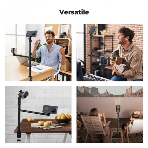 - * 【Configurazione rapida, utilizzo immediato】Preparati a creare in meno di un minuto. Il nostro sistema di montaggio da scrivania non richiede attrezzi. Basta fissare il morsetto, estendere il supporto e sei pronto per lo streaming live, le videoconferenze o la creazione di contenuti.