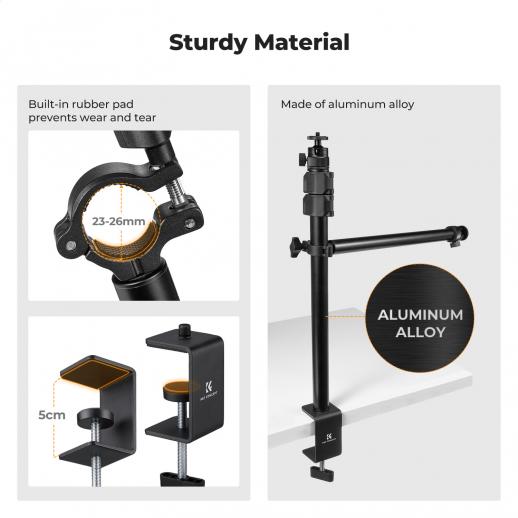 Supporto per fotocamera da soffitto K&F CONCEPT con braccio telescopico estensibile a 2 sezioni, supporto da scrivania regolabile con supporto per telefono, morsetto a C per fotocamera DSLR, telefono, webcam, microfono, ring light