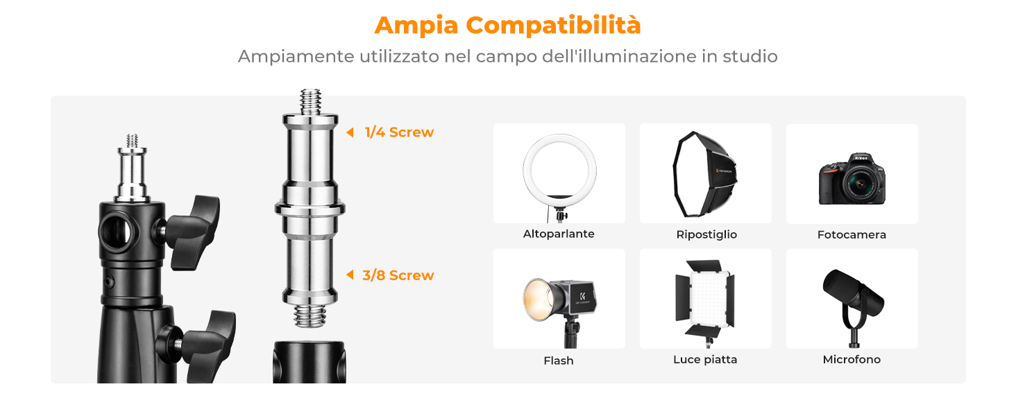 - * 【Compatibilità versatile】Dotato di un adattatore standard da 1/4" a 3/8", questo braccio si collega perfettamente a diverse apparecchiature da studio leggere, tra cui teste per telecamere, luci di riempimento e microfoni. La sua ampia compatibilità lo rende ideale per l'uso in barbieri, studi di tatuaggi, centri estetici, studi musicali, studi fotografici e configurazioni per lo streaming live.
