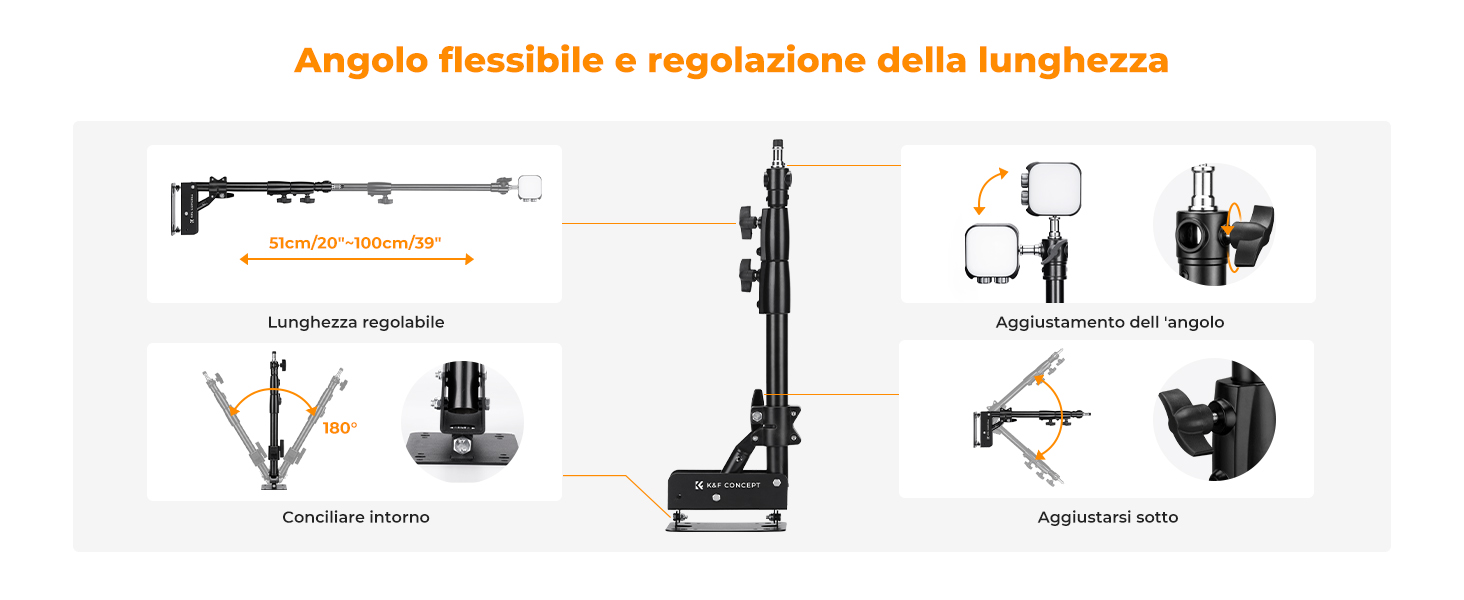 K&F CONCEPT Braccio a braccio triangolare montato a parete 39.37"/100cm - Regolabile a 180° per luci ad anello, illuminazione video, fotocamere e softbox