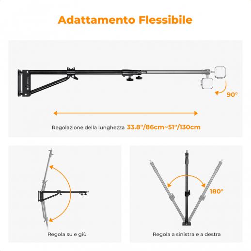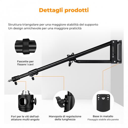 K&F CONCEPT Braccio a braccio triangolare montato a parete 51.18"/130cm - Regolabile a 180° per luci ad anello, illuminazione video, fotocamere e softbox