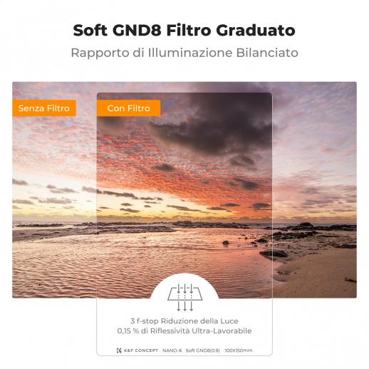 100x100mm Kit Filtro Quadrato ND1000 + ND8 Soft Gradient + Portafiltro in Metallo + Anelli adattatori - Serie Nano-Xcel