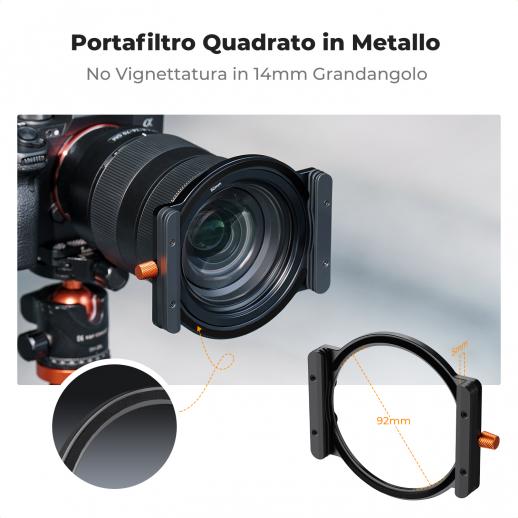 Ottima fattura dell'Holder. Buoni i ring per l'inserimento sulla lente, buona la fattura. Il Filtro ND1000 è veramente ottimo, la sua custodia particolarmente protettiva. Unica pecca, a mio parere, la possibilità di inserire solo due lastre anziché tre come in altri brand, ma l'Holder è veramente ben fatto tien molto bene le lastre sia della K&C che di altri brand. L'inserimento è ben forzato e la protezione per le lastre è ben fatta. Non ho ottenuto vignettatura con lenti D.82 da 24mm ne su D.72 da 15mm. A questo aggiungo che ho anche messo un polarizzatore slim dietro l'Holder a D.72 e un filtro variabile e poi messo le lastre non ho ottenuto vignettature. Ottimo prodotto lo consiglio.