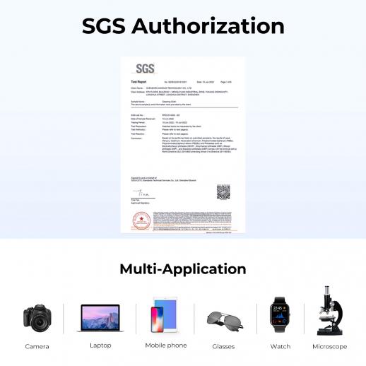 - * Panni per la pulizia dell'obiettivo sicuri da usare su qualsiasi superficie inclusi occhiali, filtro per obiettivo della fotocamera, monitor di computer, laptop, tablet, smartphone, videocamera, binocolo, specchietto retrovisore di automobili