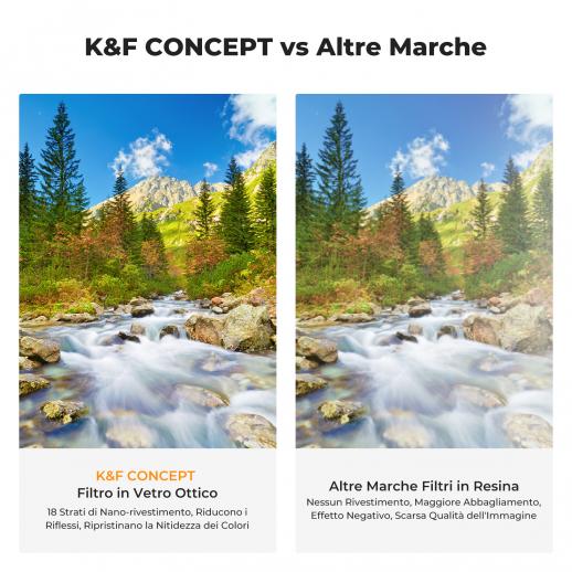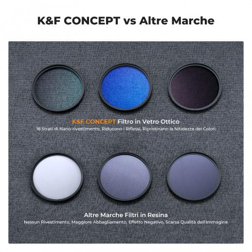 - * 【Il kit include】 Il kit di filtri per obiettivi fotografici professionali in vetro ottico K&F Concept include filtro UV + filtro polarizzatore CPL + filtro a densità neutra (ND4) + sacchetto filtro + con panno per la pulizia dell'obiettivo.