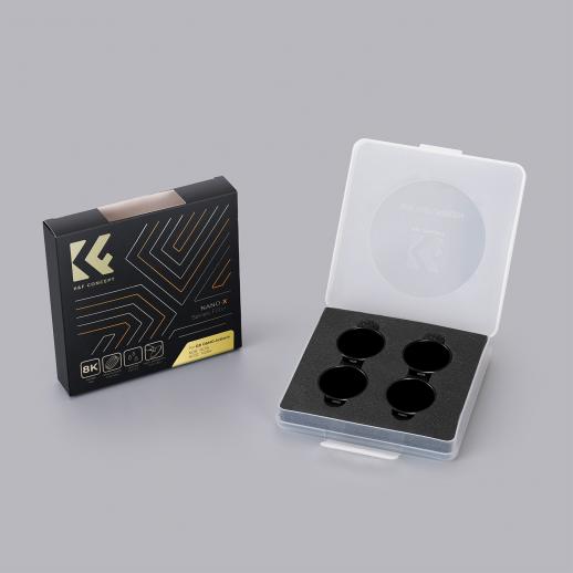L'obiettivo in confezione da 4 viene fornito nella propria custodia di plastica. Sono stati progettati per DJI Osmo Action 4 e possono essere agganciati all'obiettivo esistente.