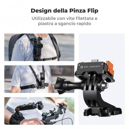 - * 【Compatibilità universale e design multifunzionale】. I fori per viti da 1/4 nella parte inferiore del supporto sono compatibili con la maggior parte dei treppiedi, fasce per la testa, fasce toraciche, bastoni per selfie e altri accessori. Le dita pieghevoli sono dotate di una vite a T in metallo che può essere fissata a fasce per la testa, fasce toraciche, clip per zaino o qualsiasi accessorio che può essere dotato di un connettore a doppio dente.