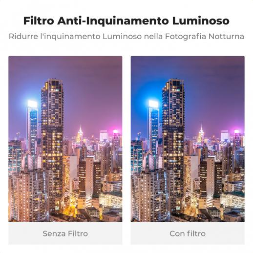 - * 【Filtro di riduzione dell'inquinamento luminoso per Osmo Pocket 3】Aiuta a ridurre l'effetto indesiderato del colore giallo/verde causato dalle luci della città, conferendo alle fotografie maggiore contrasto e chiarezza.