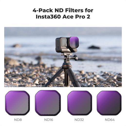- * 【Compatibile con Insta360 Ace Pro 2】Questo filtro ND è compatibile con Insta360 Ace Pro 2, offrendo una soluzione completa con quattro diverse opzioni di densità (ND8, ND16, ND32, ND64) per soddisfare le esigenze di riduzione della luce e dei riflessi, abbattendo i costi e semplificando la scelta.