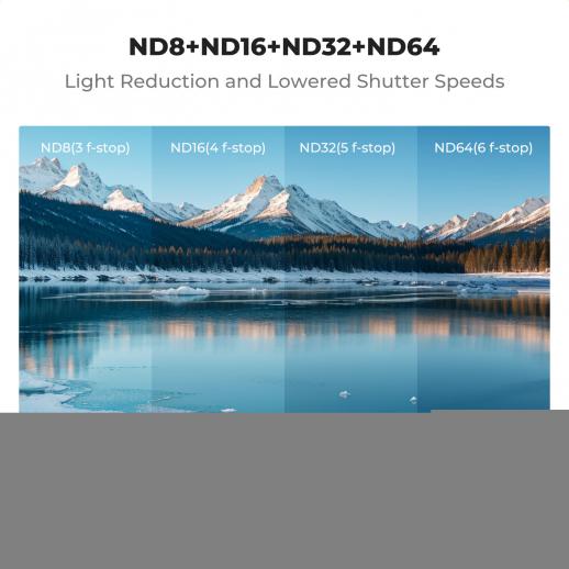 - * 【Contenuto del Pacco】Il pacco include 4 filtri ND (ND8, ND16, ND32, ND64) per una varietà di condizioni di luce e un panno di pulizia per mantenere i filtri in perfette condizioni, assicurando una performance costante e ottimale.