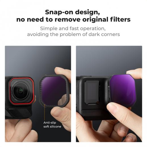 Io uso i filtri per la mia insta 360 Ace pro 2, si adattano perfettamente e sono facili da attaccare. La qualità con K&F è sempre ottimale, perfetta per creare foto/video delle tue uscite. P.s. prima di attaccare i filtri ricordati di togliere la copertura del microfono e rimetterla una volta attaccato il filtro.