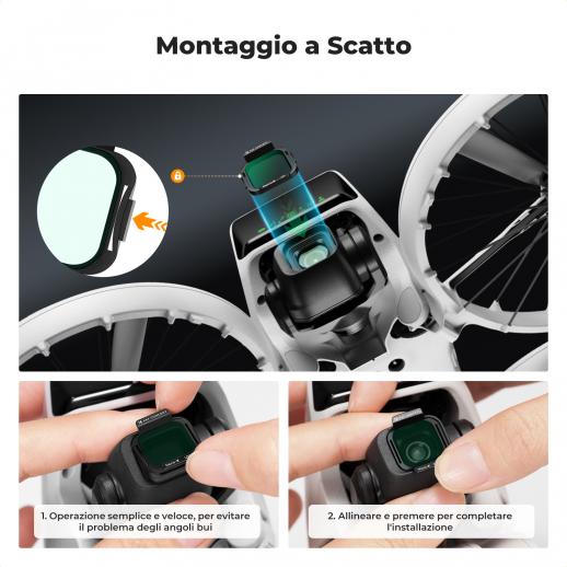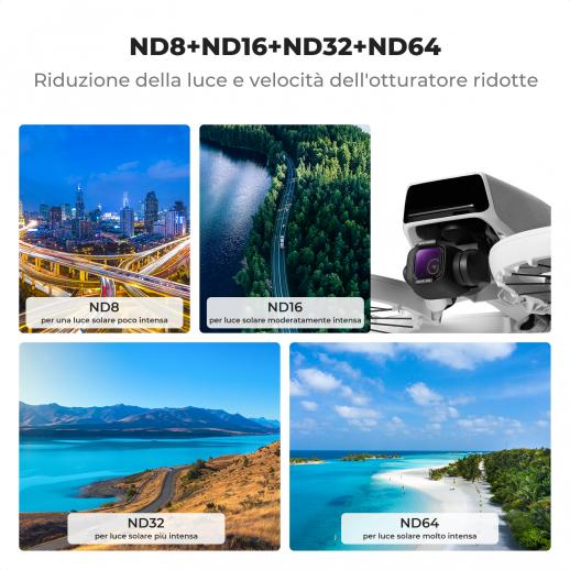 Sono inclusi 4 filtri ND polarizzati, ND8, ND16, ND32 e ND64, per la DJI Flip, che permettono di sfruttare al meglio la fotocamera in modalità manuale senza sovraesposizione nelle giornate di sole. Rapporto qualità/prezzo altamente consigliato.