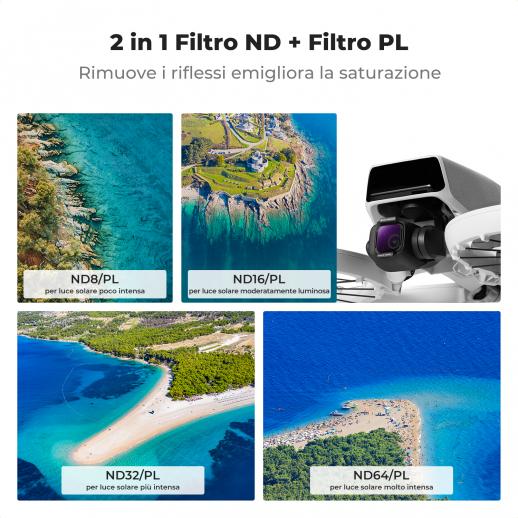 Sono inclusi 4 filtri ND polarizzati, ND8, ND16, ND32 e ND64, per la DJI Flip, che permettono di sfruttare al meglio la fotocamera in modalità manuale senza sovraesposizione nelle giornate di sole. Rapporto qualità/prezzo altamente consigliato.