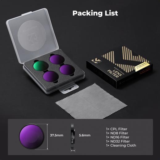 K&F Concept Kit Filtri Compatibile con DJI Osmo Action 6, Pacco da 4 Filtri CPL ND8 ND16 ND32 per Controllo dell'Esposizione e Riduzione della Luce, Filtri Polarizzatori in Vetro Ottico Multirivestito