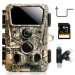 Videocamera di tracciamento 4K 30MP Videocamera da gioco WiFi Videocamera da gioco con angolo di 120° Trigger da 0,2 secondi Visione notturna nitida con 850nm 36 Luce a infrarossi 65 piedi, IP66 Impermeabile con scheda SD 64G e set combinato di lettori di