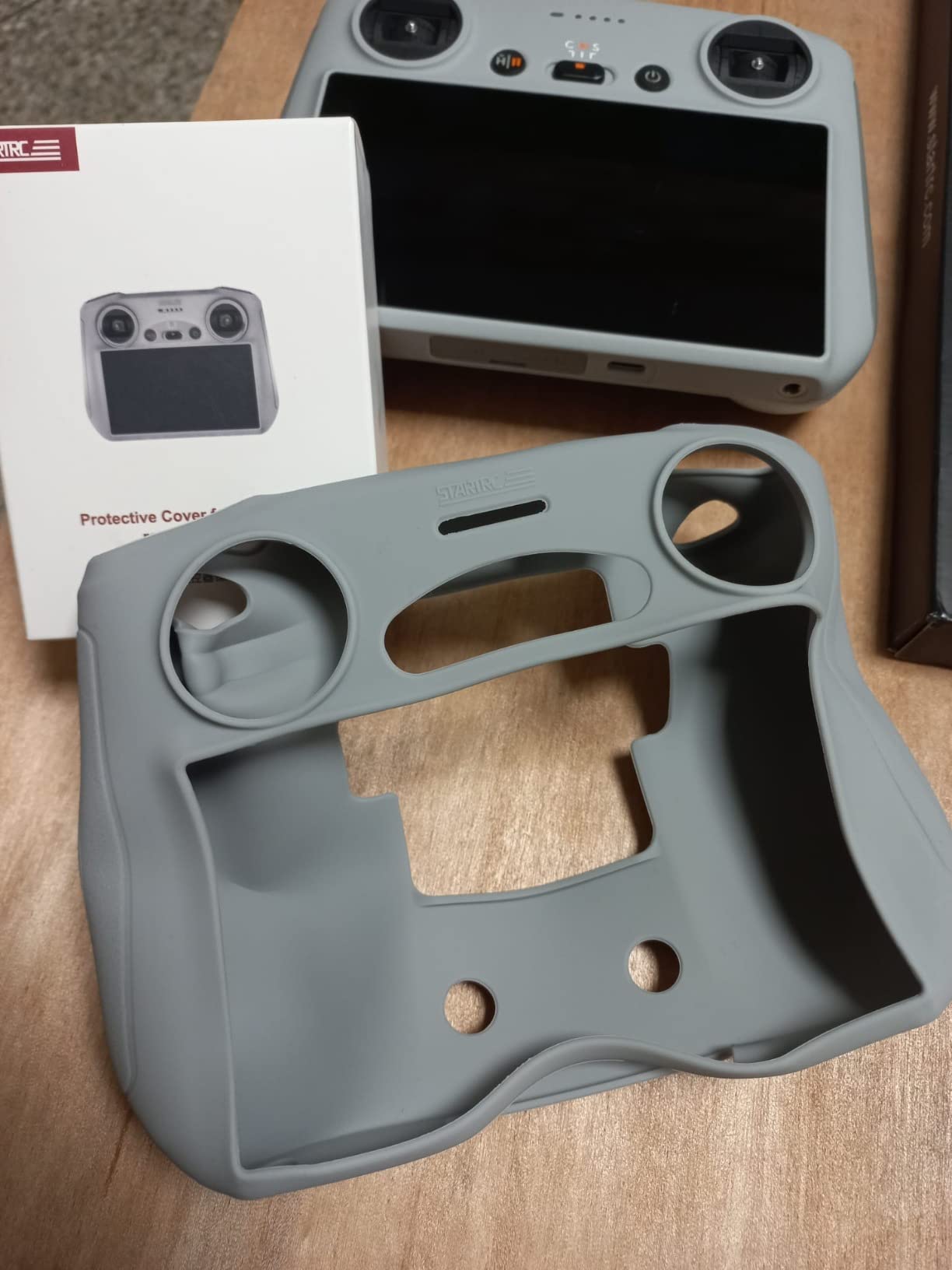 Il prodotto arriva in una piccola scatola. Essendo plastica morbida poi si srotola facilmente ed é super semplice da installare sul radiocomando. Personalmente lo consiglio per proteggere il DJI RC senza avere troppi pensieri quando lo si poggia a terra. Il grip rimane perfetto.
