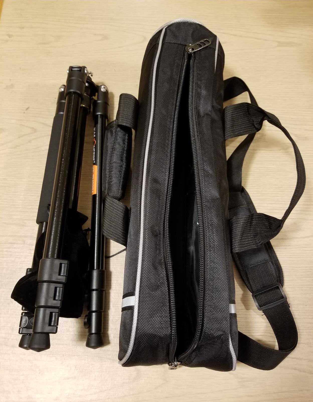 L'ho preso per mia moglie, non solo per le sue fotografie, ma anche come soluzione per l'illuminazione. Fotografa i suoi prodotti da vendere nel suo negozio, e la sua torcia era grande e pesante, e il suo vecchio treppiede non era in grado di reggerla. Ma questo... Questo è di tutt'altra categoria. La borsa per il trasporto è inclusa ed è piuttosto comoda. Il treppiede si piega facilmente per adattarsi, non c'è bisogno di faticare per chiuderlo con la cerniera o altro. Sembra anche molto resistente, con entrambe le maniglie e una tracolla incluse. Il treppiede in sé è leggero, ma molto, molto resistente. Le gambe (con telescopio 3x) sono molto più lunghe di quanto ci servirà mai, e questo è decisamente un vantaggio. Si agganciano anche a scatto, quindi la sua pesante macchina fotografica e la sua torcia non si muovono da nessuna parte. Lo adoro. Niente dadi da avvitare o altro per sistemare le gambe. Sulla parte superiore, ci sono le normali manopole girevoli per bloccare la macchina fotografica o le luci in posizione, e sono entrambe facili da girare e piuttosto stabili. Nel complesso, mi piace molto, piace molto anche a lei e sto pensando di regalarne un altro a un'amica per Natale!